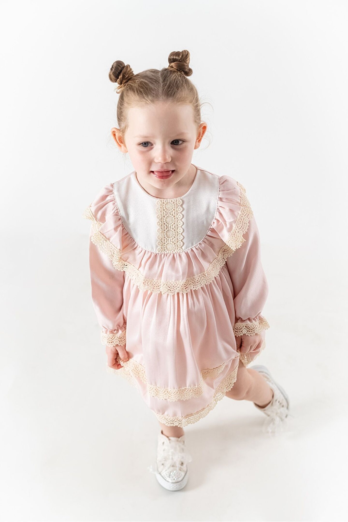 Zarif Dantel Detaylarıyla Saten Retro Tarzı Kız Çocuk Elbise Küçük prensesiniz için özel olarak tasarlanmış, vintage tarzıyla göz kamaştıran uzun kollu kız çocuk elbisesi ile klasik şıklığı keşfedin! Bu zarif elbise, saten kumaşının dokunaklılığı ve dantel detaylarının estetiğiyle, çocuğunuzun tarzını tamamlar. ; Özellikler: Önü Dantel Detaylı: Elbisenin ön kısmında yer alan incelikli dantel detayları, vintage tarzıyla çocuğunuzun gardırobuna romantik bir hava katar. ; Bu detay, özel günlerde veya günlük kullanımda fark yaratır. ; Uzun Kollu Tasarım: Serin havalarda dahi konfor sunan uzun kollu yapısı, çocuğunuzun rahat etmesini sağlar. ; Mevsim geçişlerinde stil ve konforu bir araya getirir. ; İç Astarlama: Saten kumaşın yumuşak astarı, cildi tahriş etmeden gün boyu rahatlık sunar. ; Kaliteli malzeme kullanımıyla birleşen astar, çocuğunuzun hareket özgürlüğünü destekler. ; Retro Tarzı: Klasik ve zamansız tasarımıyla retro tarzının izlerini taşıyan bu elbise, özel günlerde veya fotoğraf çekimlerinde unutulmaz bir görünüm sunar. ; Boyut Seçenekleri: 2-5 yaş aralığındaki kızlar için özel olarak tasarlanmış çeşitli beden seçenekleri mevcuttur, böylece en uygun bedeni seçerek çocuğunuzun konforunu sağlayabilirsiniz. ; Bu dantel detaylı, saten kumaşlı retro tarzı kız çocuk elbisesi, özel günlerde veya günlük kullanımda zarafet ve rahatlığı bir arada sunar. ; Yüksek kaliteli malzemeler ve özenli detaylar, çocuğunuzun tarzını ve konforunu ön planda tutar. ; Eğer çocuğunuzun gardırobuna vintage bir dokunuş katmak istiyorsanız, bu elbise onun için mükemmel bir seçenek olabilir!;
