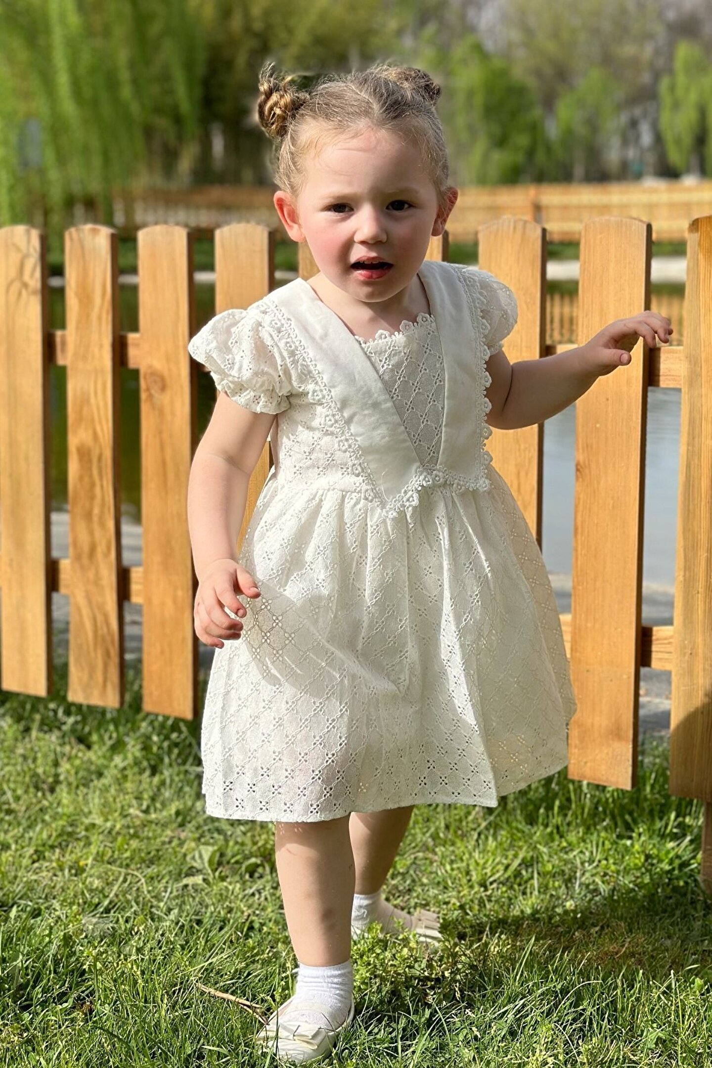 Yazlık Dantelli Kısa Kollu Kız Çocuk Elbisesi: Küçük prensesinizin yazın serin ve zarif kalmasını sağlayacak bu dantelli elbise, özel günlerdeki görünümünü tamamlayacak şıklıkta tasarlanmıştır. ; Dantel detaylarıyla zenginleştirilmiş kısa kollu tasarımı, bebeğinizin hem konforunu hem de zarafetini ön planda tutar. ; Özellikler: Zarif Dantel Detayları: Elbisenin üzerindeki dantel detayları, küçük prensesinizin görünümüne zarafet ve incelik katar. ; Özel günlerdeki parıltısını artırır. ; Yazlık Kullanım İçin Uygun: Hafif ve nefes alabilen kumaşıyla yaz aylarında bebeğinizin serin kalmasını sağlar. ; Kısa Kollu Tasarım: Yazın sıcak günlerinde rahatlıkla giyilebilecek olan kısa kollu tasarım, bebeğinizin özgürce hareket etmesini sağlar. ; Çeşitli Renk Seçenekleri: Farklı renk seçenekleri arasından bebeğinizin tarzına ve zevkine uygun olanı seçebilirsiniz. ; Özel Günler İçin Uygun Kesim: Dantel detayları ve zarif tasarımıyla özel günlerde kullanıma uygun olan bu elbise, bebeğinizin her adımda göz kamaştırmasını sağlar. ; Bu dantelli kısa kollu kız çocuk elbisesi, küçük prensesinizin yazın serin ve zarif kalmasını sağlarken aynı zamanda özel günlerinde de şıklığını tamamlar. ; Zarif dantel detaylarıyla bezenmiş bu elbise, bebeğinizin unutulmaz anlar yaşamasını sağlar.;
