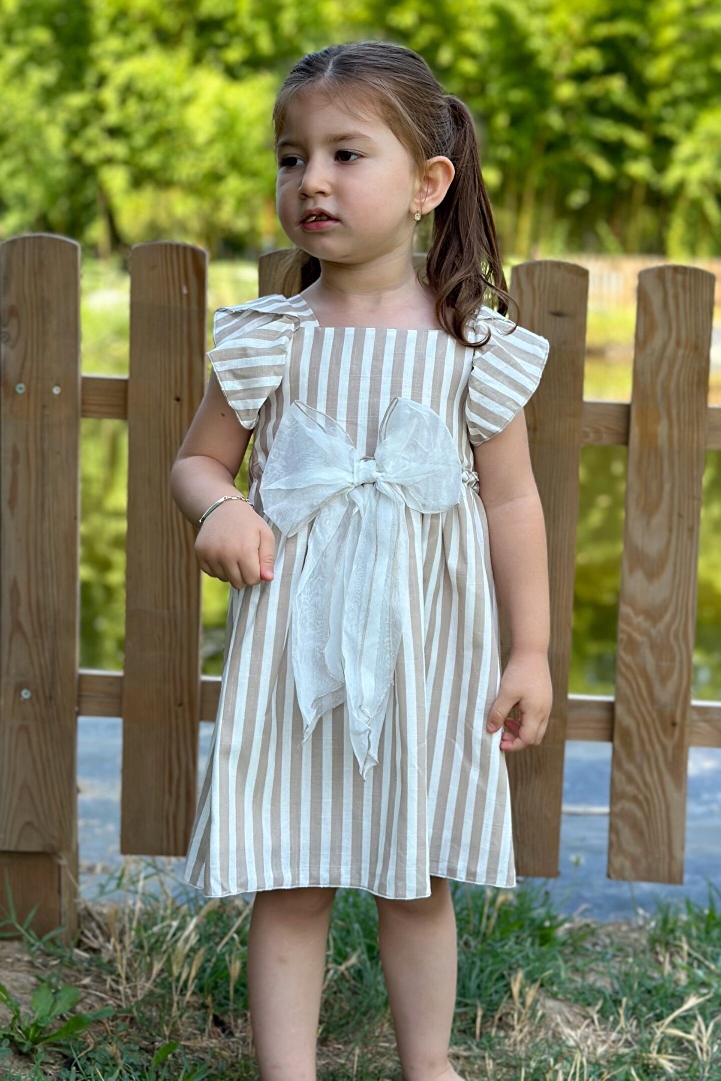 Yazlık Kısa Kollu Dantel Detaylı Kız Çocuk Elbisesi: Küçük prensesinizin yaz mevsiminde özel günlerde zarafetini ve şıklığını ön plana çıkaracak bu elbise, önünde bulunan fiyonk detayı ve dantel işlemeleriyle tasarlanmıştır.; Ayrıca etek kısmında bulunan yırtmaç detayı, hareket özgürlüğü sağlarken bebeğinizin zarif bir görünüm sergilemesini sağlar.; Özellikler: Dantel Detaylar: Elbisenin ön kısmında ve kollarda bulunan dantel detaylar, zarafet ve incelik katarken, küçük prensesinizin görünümünü daha etkileyici hale getirir.; Önünde Fiyonk Detayı: Elbisenin ön kısmında bulunan fiyonk detayı, sevimliliği ve şıklığı artırır.; Küçük prensesinizin görünümüne hoş bir dokunuş ekler.; Yırtmaç Detayı: Etek kısmında bulunan yırtmaç detayı, hareket özgürlüğü sağlarken, elbisenin tasarımına dinamizm katar.; Kısa Kollu Tasarım: Sıcak yaz günlerinde rahatlıkla giyilebilecek kısa kollu tasarım, bebeğinizin serin kalmasını sağlar ve özgürce hareket etmesine olanak tanır.; Yazlık Kullanıma Uygun: Hafif yapısı ve nefes alabilen kumaşıyla yaz aylarında rahatlıkla giyilebilir.; Özel Günler İçin Uygun: Özel günlerde tercih edilebilecek şık tasarımıyla bebeğinizin her anında göz kamaştırmasını sağlar.; Bu yırtmaçlı, önü fiyonklu ve dantel detaylı kısa kollu kız çocuk elbisesi, küçük prensesinizin yazın serin ve şık kalmasını sağlarken, aynı zamanda özel günlerde de zarafetini tamamlar.; Zarif detaylarıyla bezenmiş bu elbise, bebeğinizin tarzını ve güzelliğini ön plana çıkarır.