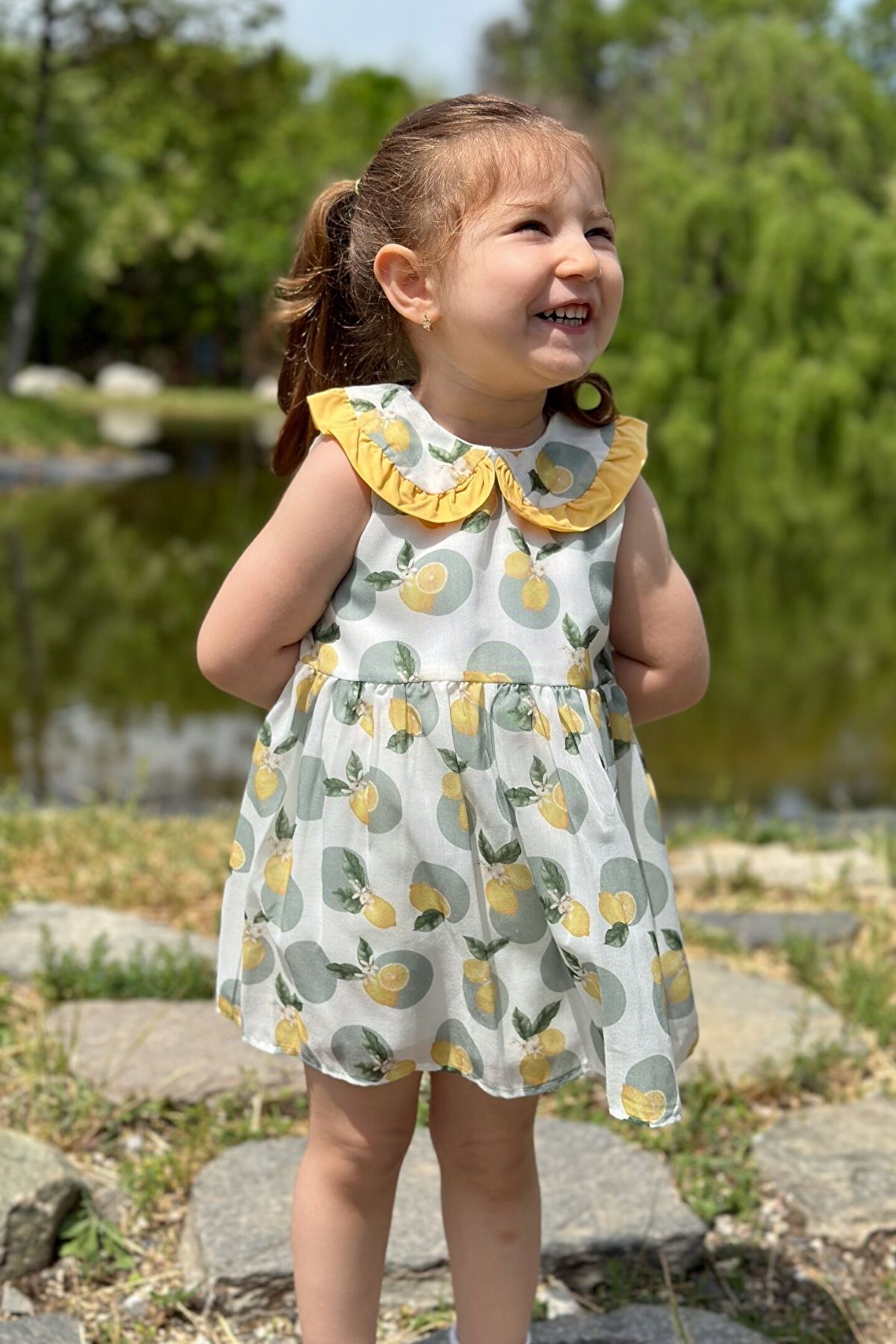 Yazlık Kısa Kollu Dantel Detaylı Kız Çocuk Elbisesi: Küçük prensesinizin yaz mevsiminde özel günlerde zarafetini ve şıklığını ön plana çıkaracak bu elbise, önünde bulunan fiyonk detayı ve dantel işlemeleriyle tasarlanmıştır. ; Ayrıca etek kısmında bulunan yırtmaç detayı, hareket özgürlüğü sağlarken bebeğinizin zarif bir görünüm sergilemesini sağlar. ; Özellikler: Dantel Detaylar: Elbisenin ön kısmında ve kollarda bulunan dantel detaylar, zarafet ve incelik katarken, küçük prensesinizin görünümünü daha etkileyici hale getirir. ; Önünde Fiyonk Detayı: Elbisenin ön kısmında bulunan fiyonk detayı, sevimliliği ve şıklığı artırır. ; Küçük prensesinizin görünümüne hoş bir dokunuş ekler. ; Yırtmaç Detayı: Etek kısmında bulunan yırtmaç detayı, hareket özgürlüğü sağlarken, elbisenin tasarımına dinamizm katar. ; Kısa Kollu Tasarım: Sıcak yaz günlerinde rahatlıkla giyilebilecek kısa kollu tasarım, bebeğinizin serin kalmasını sağlar ve özgürce hareket etmesine olanak tanır. ; Yazlık Kullanıma Uygun: Hafif yapısı ve nefes alabilen kumaşıyla yaz aylarında rahatlıkla giyilebilir. ; Özel Günler İçin Uygun: Özel günlerde tercih edilebilecek şık tasarımıyla bebeğinizin her anında göz kamaştırmasını sağlar. ; Bu yırtmaçlı, önü fiyonklu ve dantel detaylı kısa kollu kız çocuk elbisesi, küçük prensesinizin yazın serin ve şık kalmasını sağlarken, aynı zamanda özel günlerde de zarafetini tamamlar. ; Zarif detaylarıyla bezenmiş bu elbise, bebeğinizin tarzını ve güzelliğini ön plana çıkarır.;
