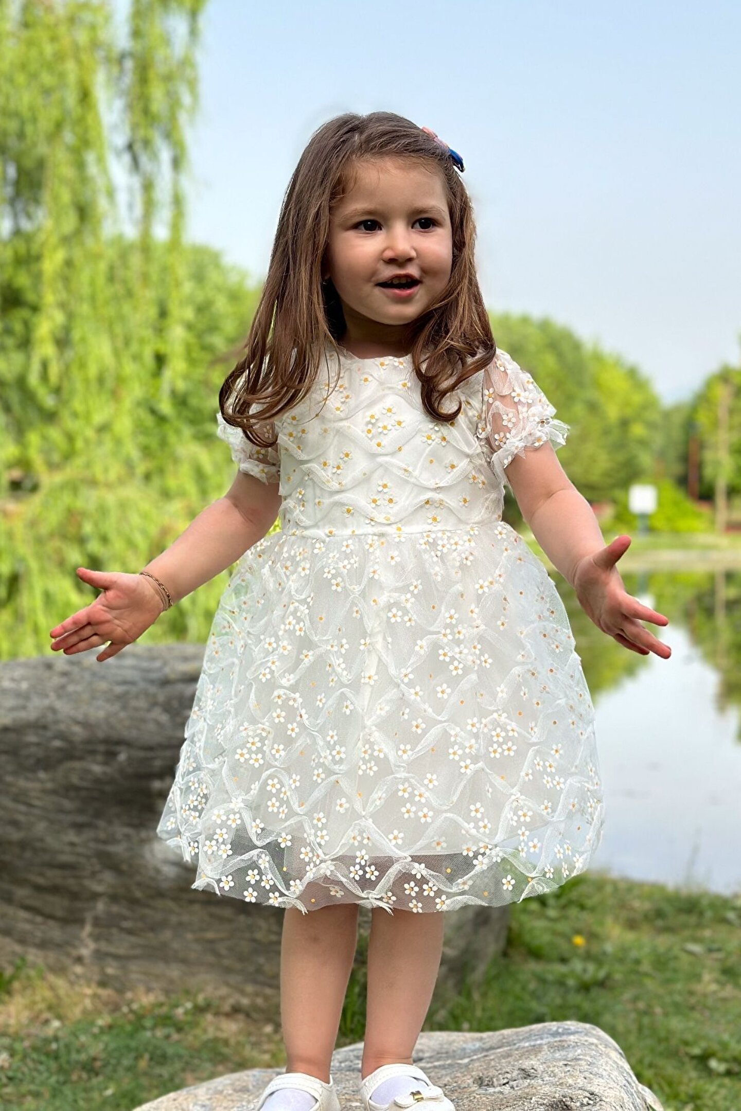 Baby Animals Kız Bebek Elbise Kız Çocuk Elbise Doğum Günü Parti Düğün Elbise Dantelli Kısa Kol Astarlı Elbise