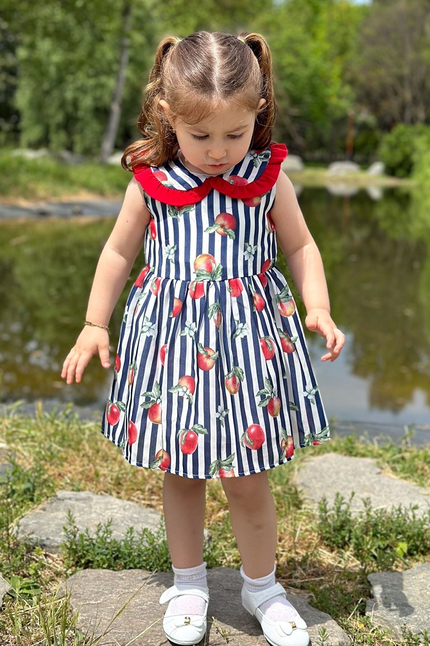 Yazlık Kısa Kollu Dantel Detaylı Kız Çocuk Elbisesi: Küçük prensesinizin yaz mevsiminde özel günlerde zarafetini ve şıklığını ön plana çıkaracak bu elbise, önünde bulunan fiyonk detayı ve dantel işlemeleriyle tasarlanmıştır. ; Ayrıca etek kısmında bulunan yırtmaç detayı, hareket özgürlüğü sağlarken bebeğinizin zarif bir görünüm sergilemesini sağlar. ; Özellikler: Dantel Detaylar: Elbisenin ön kısmında ve kollarda bulunan dantel detaylar, zarafet ve incelik katarken, küçük prensesinizin görünümünü daha etkileyici hale getirir. ; Önünde Fiyonk Detayı: Elbisenin ön kısmında bulunan fiyonk detayı, sevimliliği ve şıklığı artırır. ; Küçük prensesinizin görünümüne hoş bir dokunuş ekler. ; Yırtmaç Detayı: Etek kısmında bulunan yırtmaç detayı, hareket özgürlüğü sağlarken, elbisenin tasarımına dinamizm katar. ; Kısa Kollu Tasarım: Sıcak yaz günlerinde rahatlıkla giyilebilecek kısa kollu tasarım, bebeğinizin serin kalmasını sağlar ve özgürce hareket etmesine olanak tanır. ; Yazlık Kullanıma Uygun: Hafif yapısı ve nefes alabilen kumaşıyla yaz aylarında rahatlıkla giyilebilir. ; Özel Günler İçin Uygun: Özel günlerde tercih edilebilecek şık tasarımıyla bebeğinizin her anında göz kamaştırmasını sağlar. ; Bu yırtmaçlı, önü fiyonklu ve dantel detaylı kısa kollu kız çocuk elbisesi, küçük prensesinizin yazın serin ve şık kalmasını sağlarken, aynı zamanda özel günlerde de zarafetini tamamlar. ; Zarif detaylarıyla bezenmiş bu elbise, bebeğinizin tarzını ve güzelliğini ön plana çıkarır.;