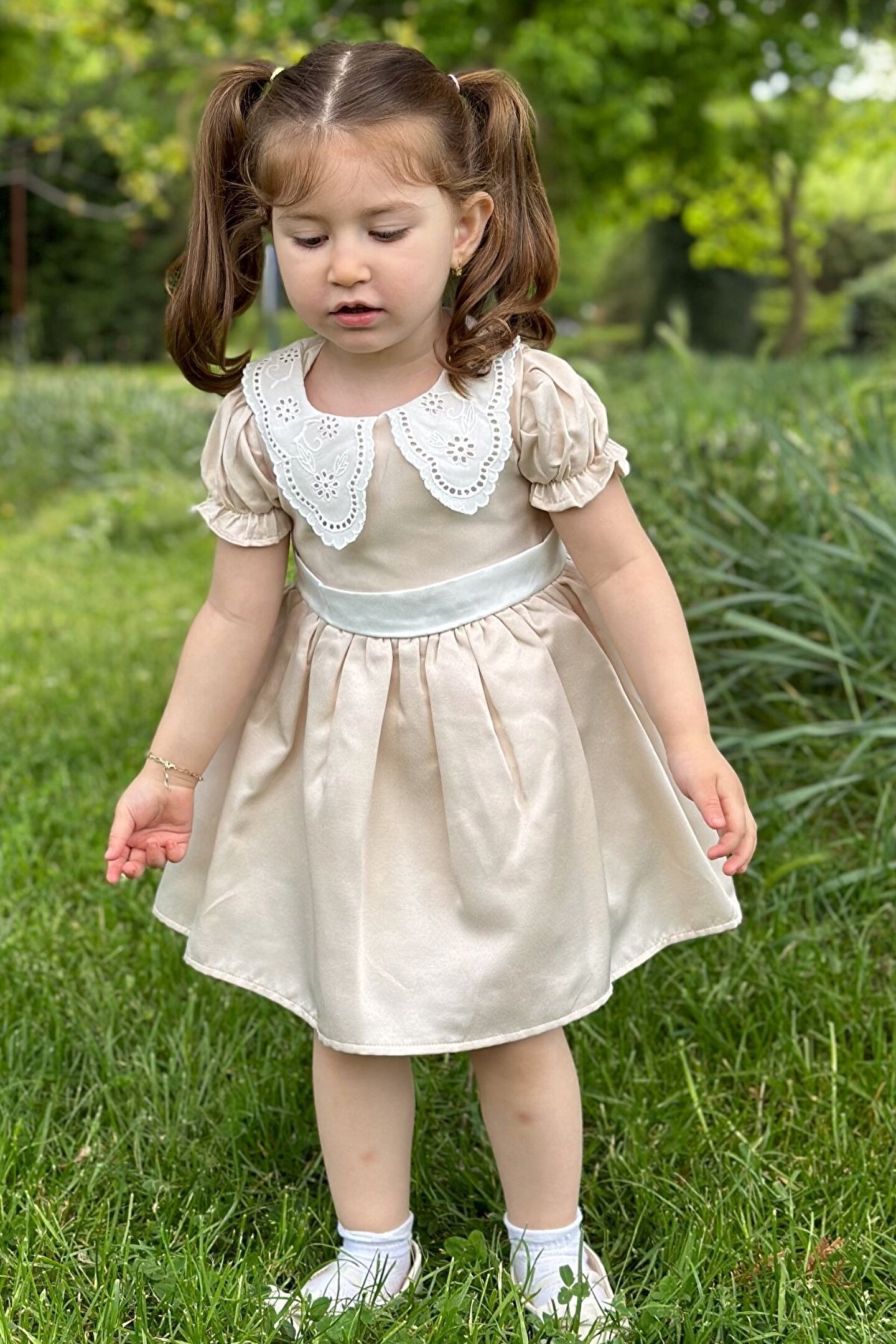 Baby Animals Kız Bebek Elbise Kız Çocuk Elbise Doğum Günü Parti Düğün Elbise Dantelli Kısa Kol Astarlı Elbise