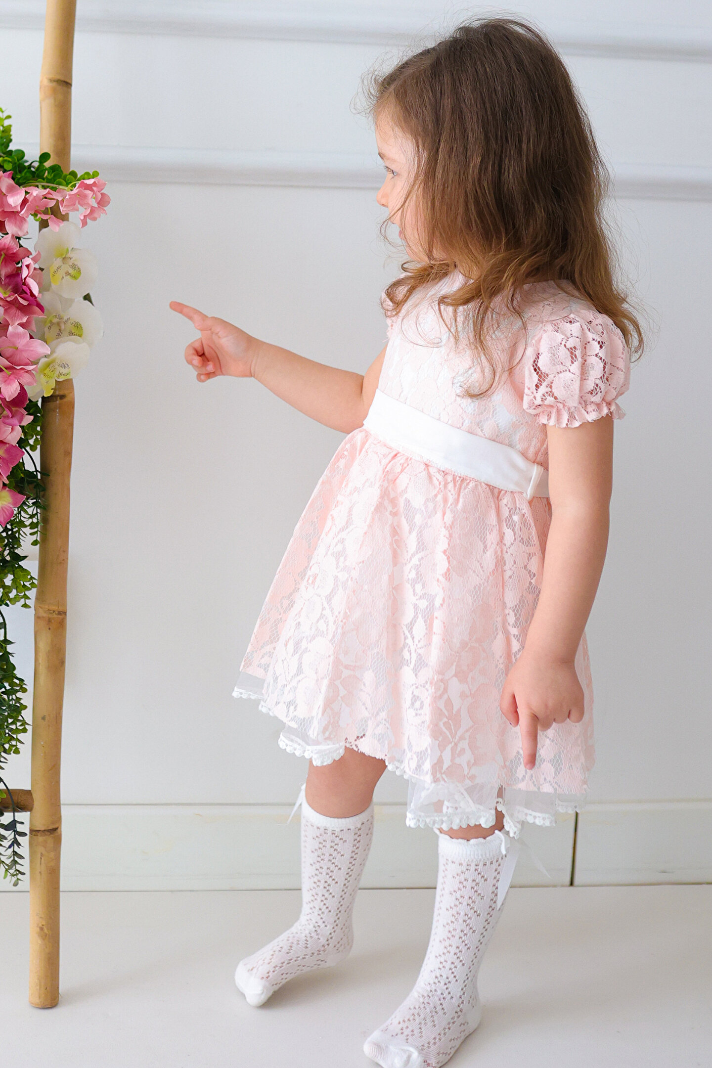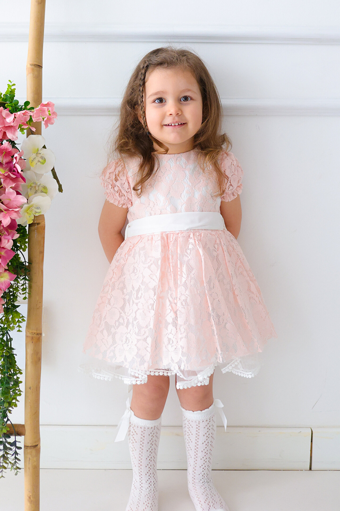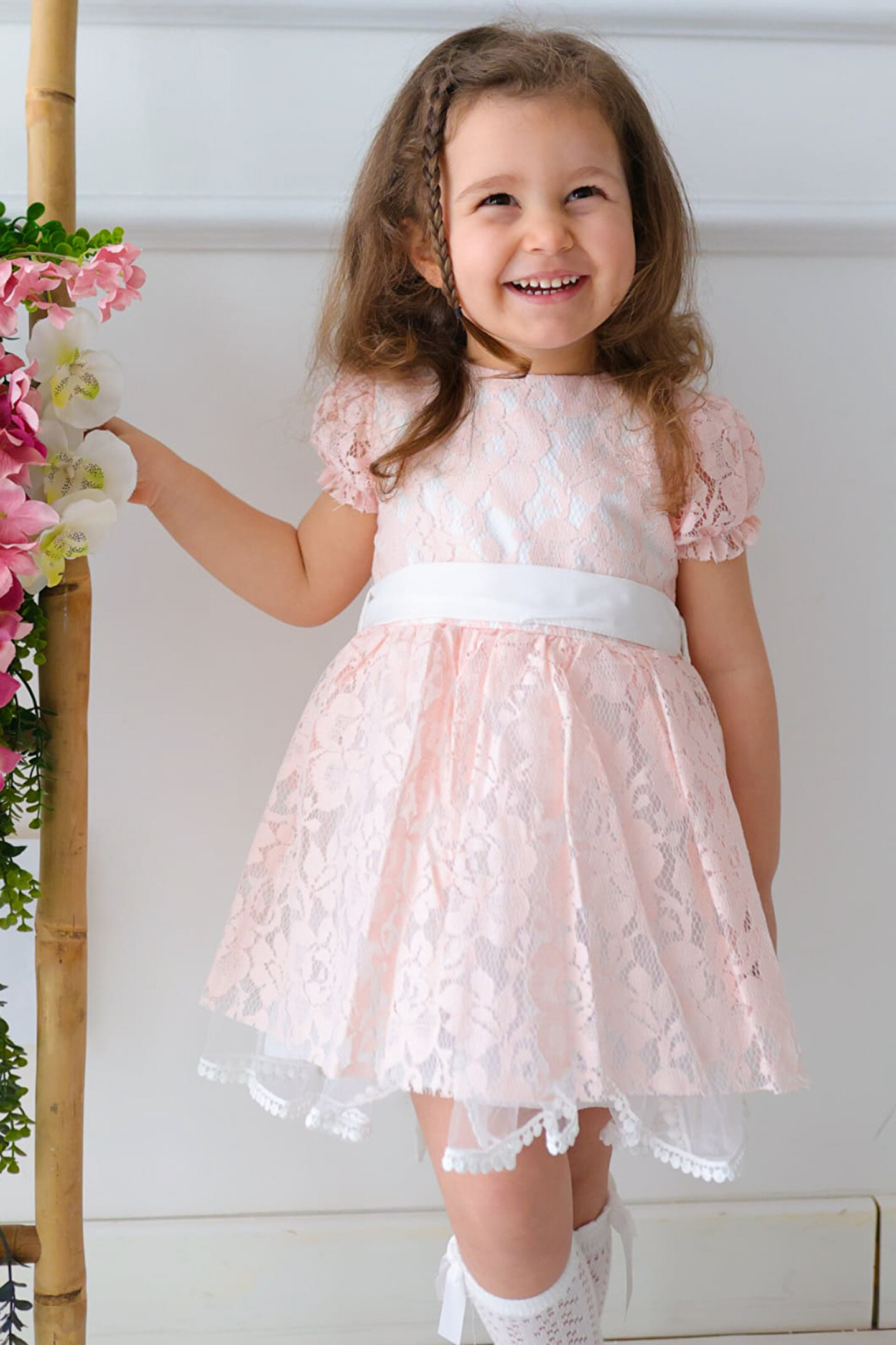 Baby Animals Kız Bebek Elbise Kız Çocuk Elbise Doğum Günü Parti Düğün Elbise Dantelli Kısa Kol Astarlı Elbise
