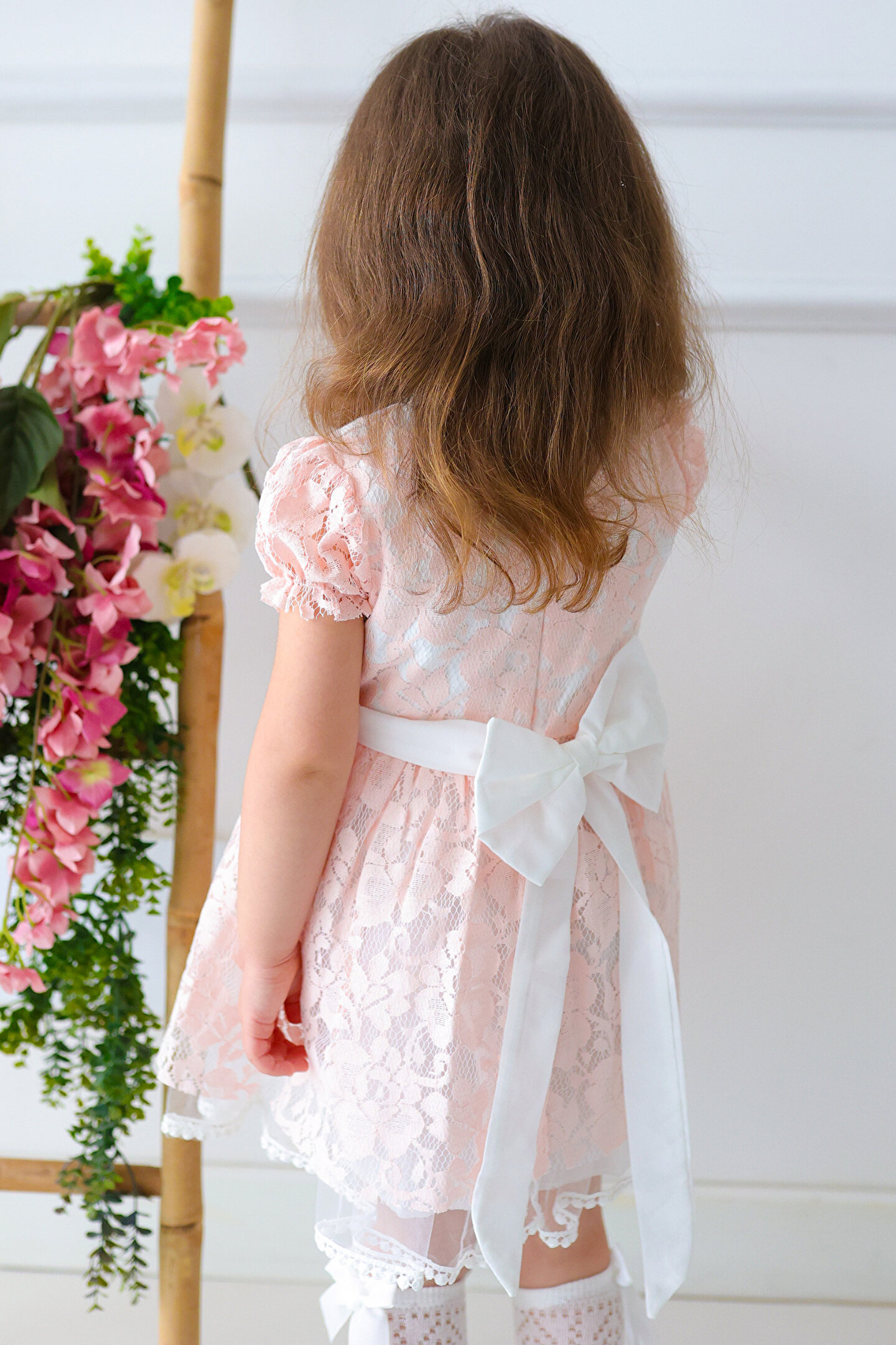 Yazlık Kısa Kollu Dantel Detaylı Kız Çocuk Elbisesi: Küçük prensesinizin yaz mevsiminde özel günlerde zarafetini ve şıklığını ön plana çıkaracak bu elbise, önünde bulunan fiyonk detayı ve dantel işlemeleriyle tasarlanmıştır.; Ayrıca etek kısmında bulunan yırtmaç detayı, hareket özgürlüğü sağlarken bebeğinizin zarif bir görünüm sergilemesini sağlar.; Özellikler: Dantel Detaylar: Elbisenin ön kısmında ve kollarda bulunan dantel detaylar, zarafet ve incelik katarken, küçük prensesinizin görünümünü daha etkileyici hale getirir.; Önünde Fiyonk Detayı: Elbisenin ön kısmında bulunan fiyonk detayı, sevimliliği ve şıklığı artırır.; Küçük prensesinizin görünümüne hoş bir dokunuş ekler.; Yırtmaç Detayı: Etek kısmında bulunan yırtmaç detayı, hareket özgürlüğü sağlarken, elbisenin tasarımına dinamizm katar.; Kısa Kollu Tasarım: Sıcak yaz günlerinde rahatlıkla giyilebilecek kısa kollu tasarım, bebeğinizin serin kalmasını sağlar ve özgürce hareket etmesine olanak tanır.; Yazlık Kullanıma Uygun: Hafif yapısı ve nefes alabilen kumaşıyla yaz aylarında rahatlıkla giyilebilir.; Özel Günler İçin Uygun: Özel günlerde tercih edilebilecek şık tasarımıyla bebeğinizin her anında göz kamaştırmasını sağlar.; Bu yırtmaçlı, önü fiyonklu ve dantel detaylı kısa kollu kız çocuk elbisesi, küçük prensesinizin yazın serin ve şık kalmasını sağlarken, aynı zamanda özel günlerde de zarafetini tamamlar.; Zarif detaylarıyla bezenmiş bu elbise, bebeğinizin tarzını ve güzelliğini ön plana çıkarır.