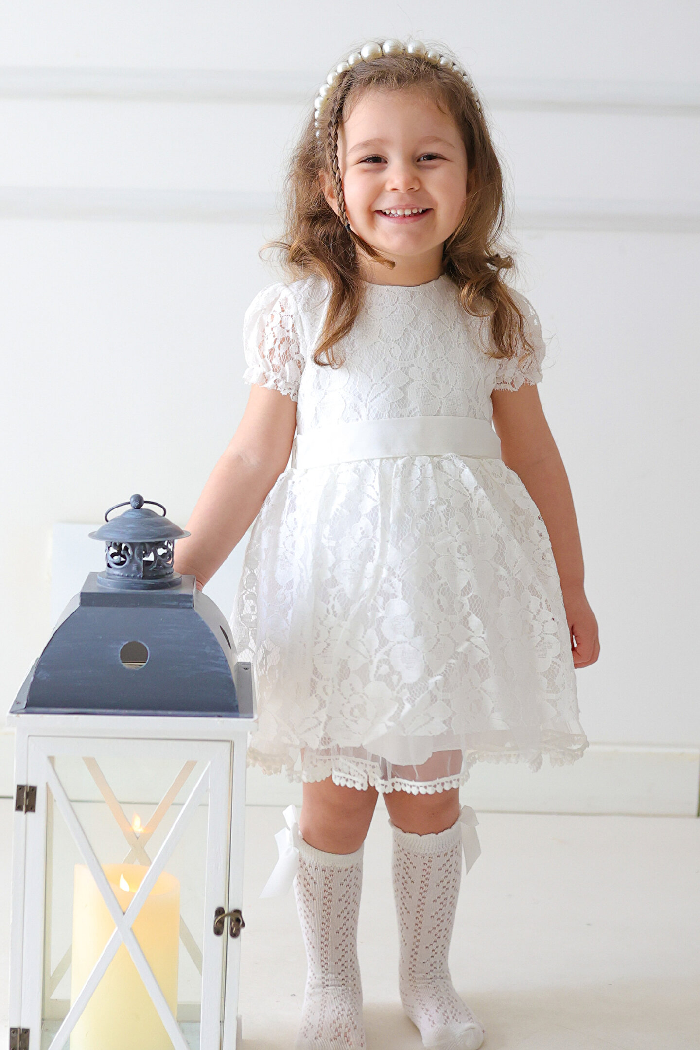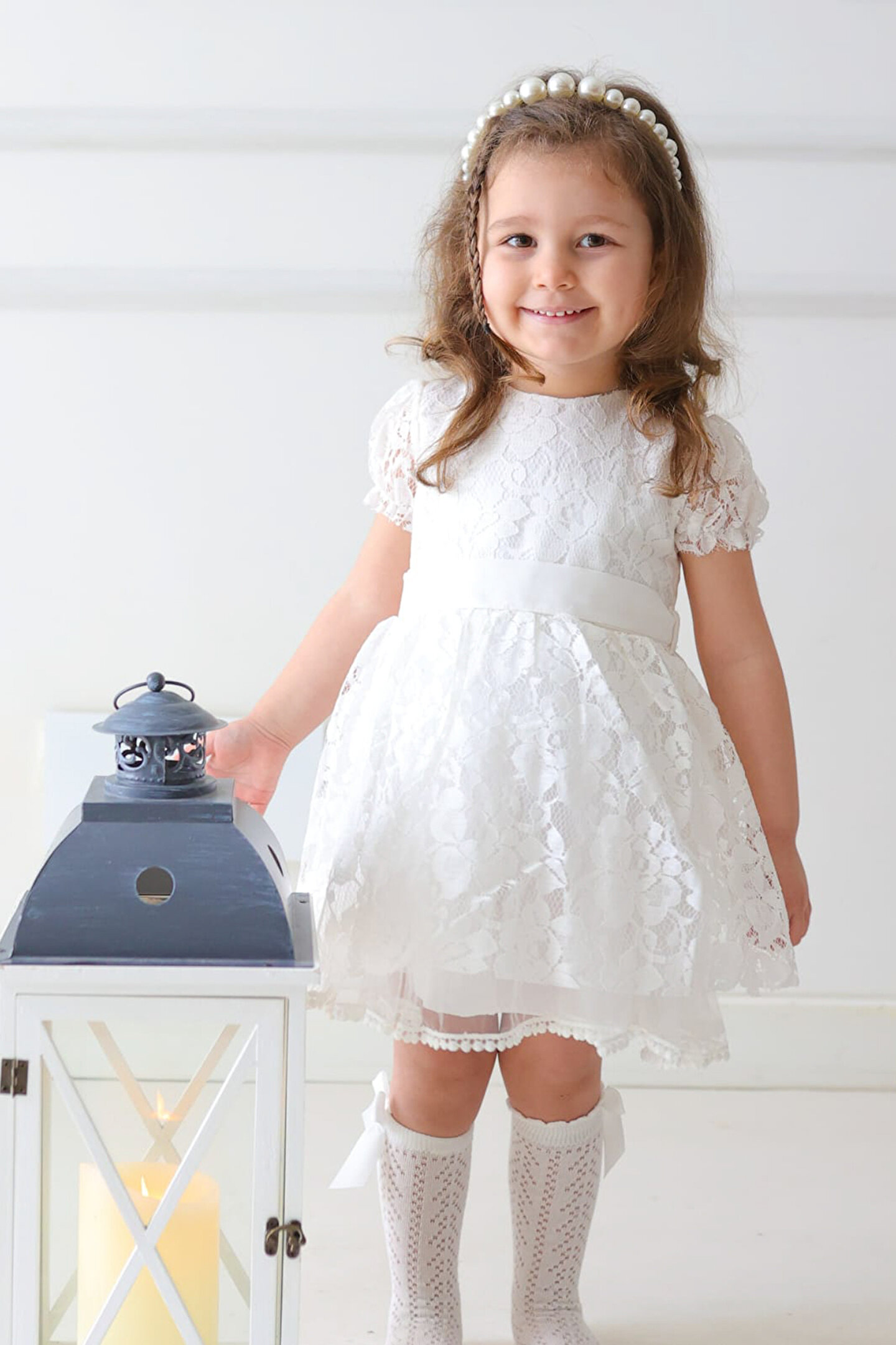 Baby Animals Kız Bebek Elbise Kız Çocuk Elbise Doğum Günü Parti Düğün Elbise Dantelli Kısa Kol Astarlı Elbise