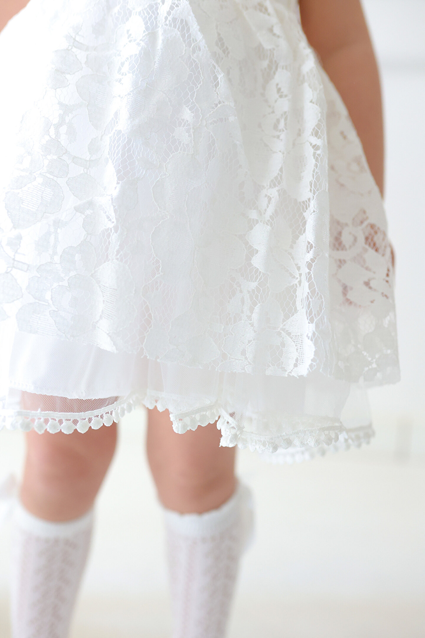 Yazlık Kısa Kollu Dantel Detaylı Kız Çocuk Elbisesi: Küçük prensesinizin yaz mevsiminde özel günlerde zarafetini ve şıklığını ön plana çıkaracak bu elbise, önünde bulunan fiyonk detayı ve dantel işlemeleriyle tasarlanmıştır.; Ayrıca etek kısmında bulunan yırtmaç detayı, hareket özgürlüğü sağlarken bebeğinizin zarif bir görünüm sergilemesini sağlar.; Özellikler: Dantel Detaylar: Elbisenin ön kısmında ve kollarda bulunan dantel detaylar, zarafet ve incelik katarken, küçük prensesinizin görünümünü daha etkileyici hale getirir.; Önünde Fiyonk Detayı: Elbisenin ön kısmında bulunan fiyonk detayı, sevimliliği ve şıklığı artırır.; Küçük prensesinizin görünümüne hoş bir dokunuş ekler.; Yırtmaç Detayı: Etek kısmında bulunan yırtmaç detayı, hareket özgürlüğü sağlarken, elbisenin tasarımına dinamizm katar.; Kısa Kollu Tasarım: Sıcak yaz günlerinde rahatlıkla giyilebilecek kısa kollu tasarım, bebeğinizin serin kalmasını sağlar ve özgürce hareket etmesine olanak tanır.; Yazlık Kullanıma Uygun: Hafif yapısı ve nefes alabilen kumaşıyla yaz aylarında rahatlıkla giyilebilir.; Özel Günler İçin Uygun: Özel günlerde tercih edilebilecek şık tasarımıyla bebeğinizin her anında göz kamaştırmasını sağlar.; Bu yırtmaçlı, önü fiyonklu ve dantel detaylı kısa kollu kız çocuk elbisesi, küçük prensesinizin yazın serin ve şık kalmasını sağlarken, aynı zamanda özel günlerde de zarafetini tamamlar.; Zarif detaylarıyla bezenmiş bu elbise, bebeğinizin tarzını ve güzelliğini ön plana çıkarır.