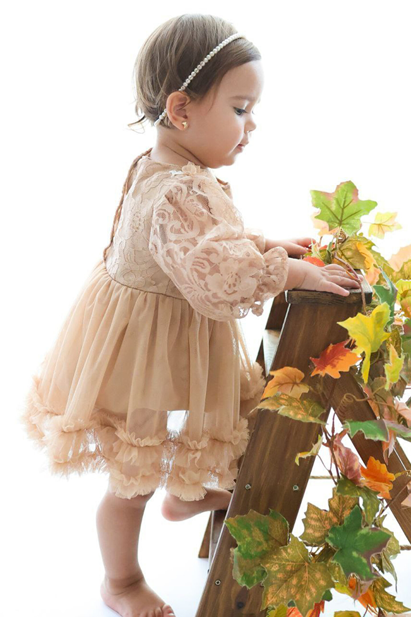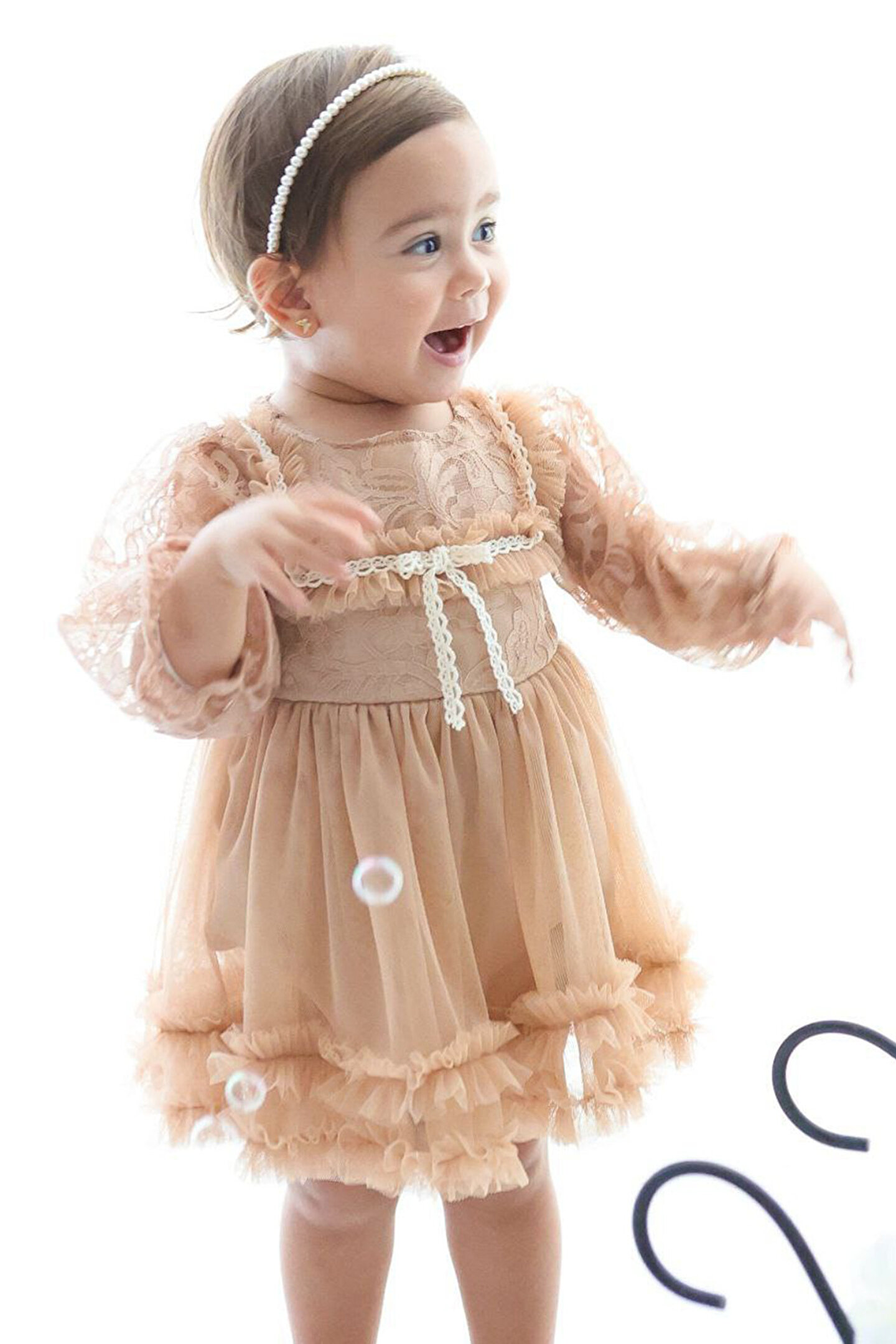 Baby Animals Kız Bebek Elbise Kız Çocuk Elbise Doğum Günü Parti Düğün Elbise Dantelli Uzun Kol Astarlı Elbise