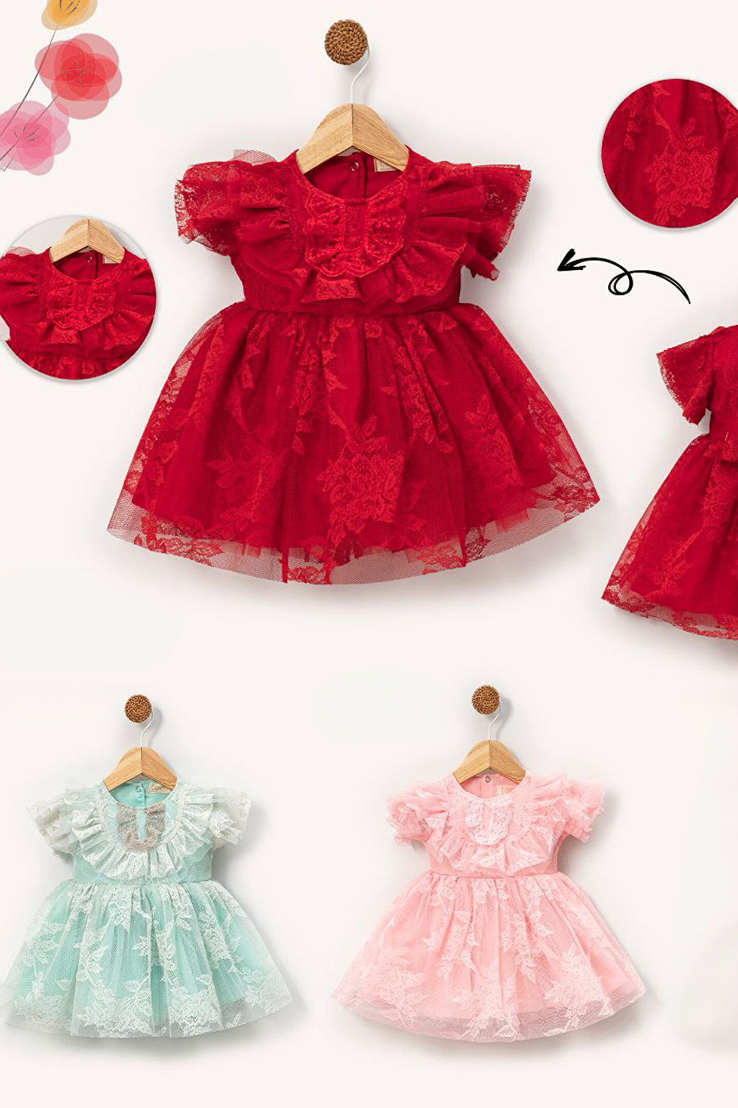 Yazlık Kısa Kollu Kolsuz Askılı Dantel Detaylı Astarlı Kız Çocuk Elbisesi: Küçük prensesinizin yaz mevsiminde özel günlerde zarafetini ve şıklığını ön plana çıkaracak bu elbise, önünde bulunan fiyonk detayı ve dantel işlemeleriyle tasarlanmıştır.; Ayrıca etek kısmında bulunan yırtmaç detayı, hareket özgürlüğü sağlarken bebeğinizin zarif bir görünüm sergilemesini sağlar.; Özellikler: Dantel Detaylar: Elbisenin ön kısmında ve kollarda bulunan dantel detaylar, zarafet ve incelik katarken, küçük prensesinizin görünümünü daha etkileyici hale getirir.; Önünde Fiyonk Detayı: Elbisenin ön kısmında bulunan fiyonk detayı, sevimliliği ve şıklığı artırır.; Küçük prensesinizin görünümüne hoş bir dokunuş ekler.; Yırtmaç Detayı: Etek kısmında bulunan yırtmaç detayı, hareket özgürlüğü sağlarken, elbisenin tasarımına dinamizm katar.; Kısa Kollu Tasarım: Sıcak yaz günlerinde rahatlıkla giyilebilecek kısa kollu tasarım, bebeğinizin serin kalmasını sağlar ve özgürce hareket etmesine olanak tanır.; Yazlık Kullanıma Uygun: Hafif yapısı ve nefes alabilen kumaşıyla yaz aylarında rahatlıkla giyilebilir.; Özel Günler İçin Uygun: Özel günlerde tercih edilebilecek şık tasarımıyla bebeğinizin her anında göz kamaştırmasını sağlar.; Bu yırtmaçlı, önü fiyonklu ve dantel detaylı kısa kollu Kolsuz Askılı kız çocuk elbisesi, küçük prensesinizin yazın serin ve şık kalmasını sağlarken, aynı zamanda özel günlerde de zarafetini tamamlar.; Zarif detaylarıyla bezenmiş bu elbise, bebeğinizin tarzını ve güzelliğini ön plana çıkarır.