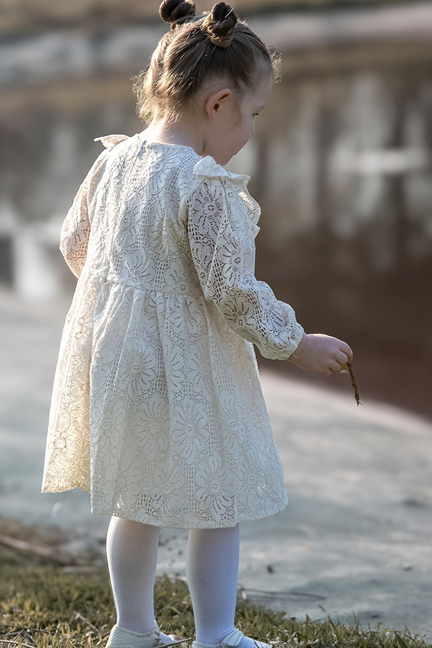 Baby Animals Kız Bebek Elbise Kız Çocuk Elbise Doğum Günü Parti Düğün Elbise Uzun Kol Astarlı Dantelli bebek giyi