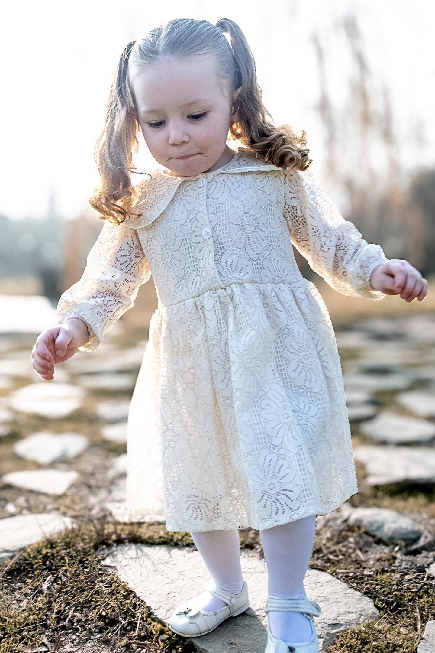 Baby Animals Kız Bebek Elbise Kız Çocuk Elbise Doğum Günü Parti Düğün Elbise Uzun Kol Astarlı Dantelli Bebek Giyi