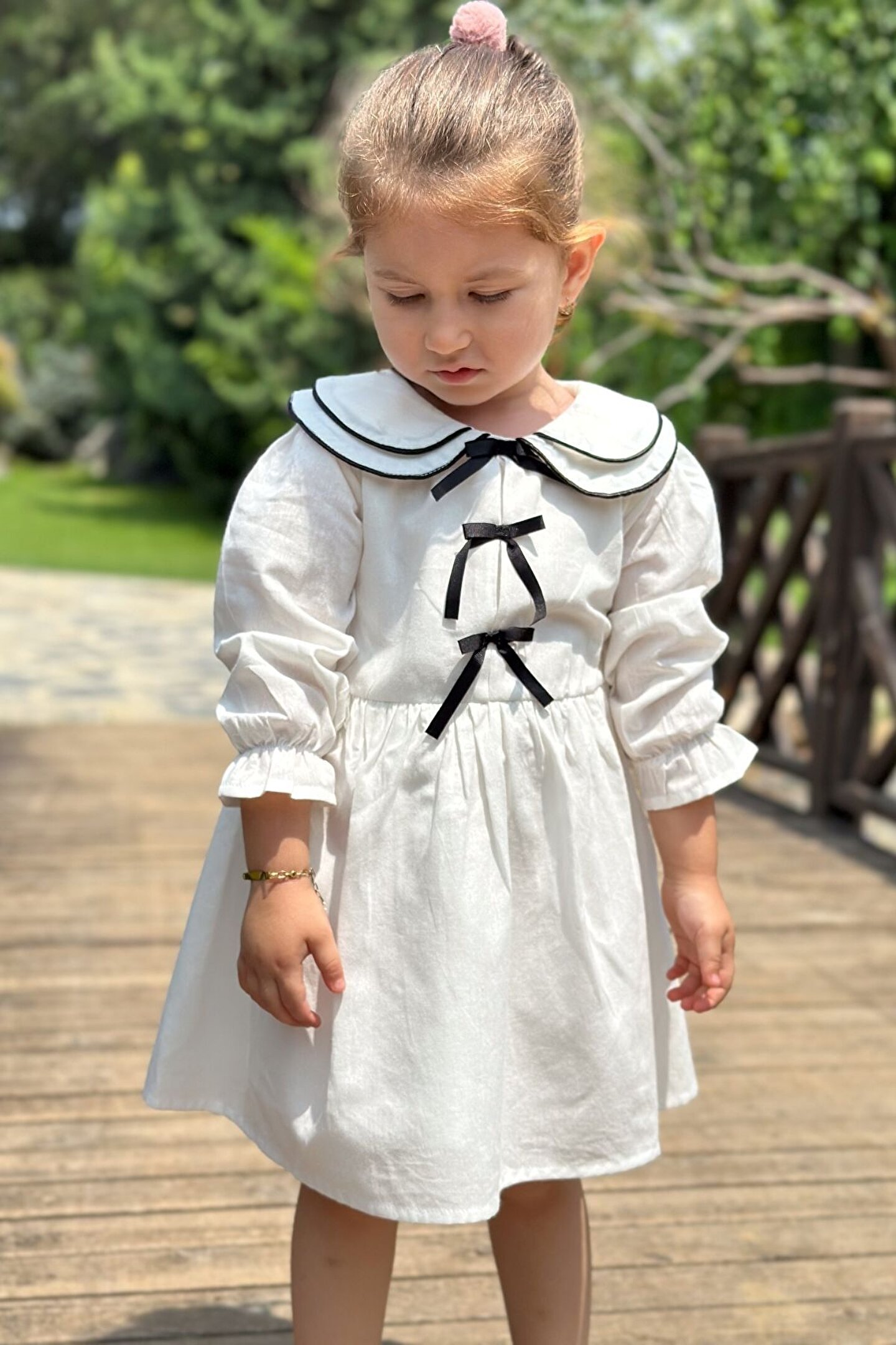 Kız Bebek Elbise Kız Çocuk Elbise Puanlı Doğum Günü Parti Düğün Özel Gün Uzun Kol Fiyonk Astarlı