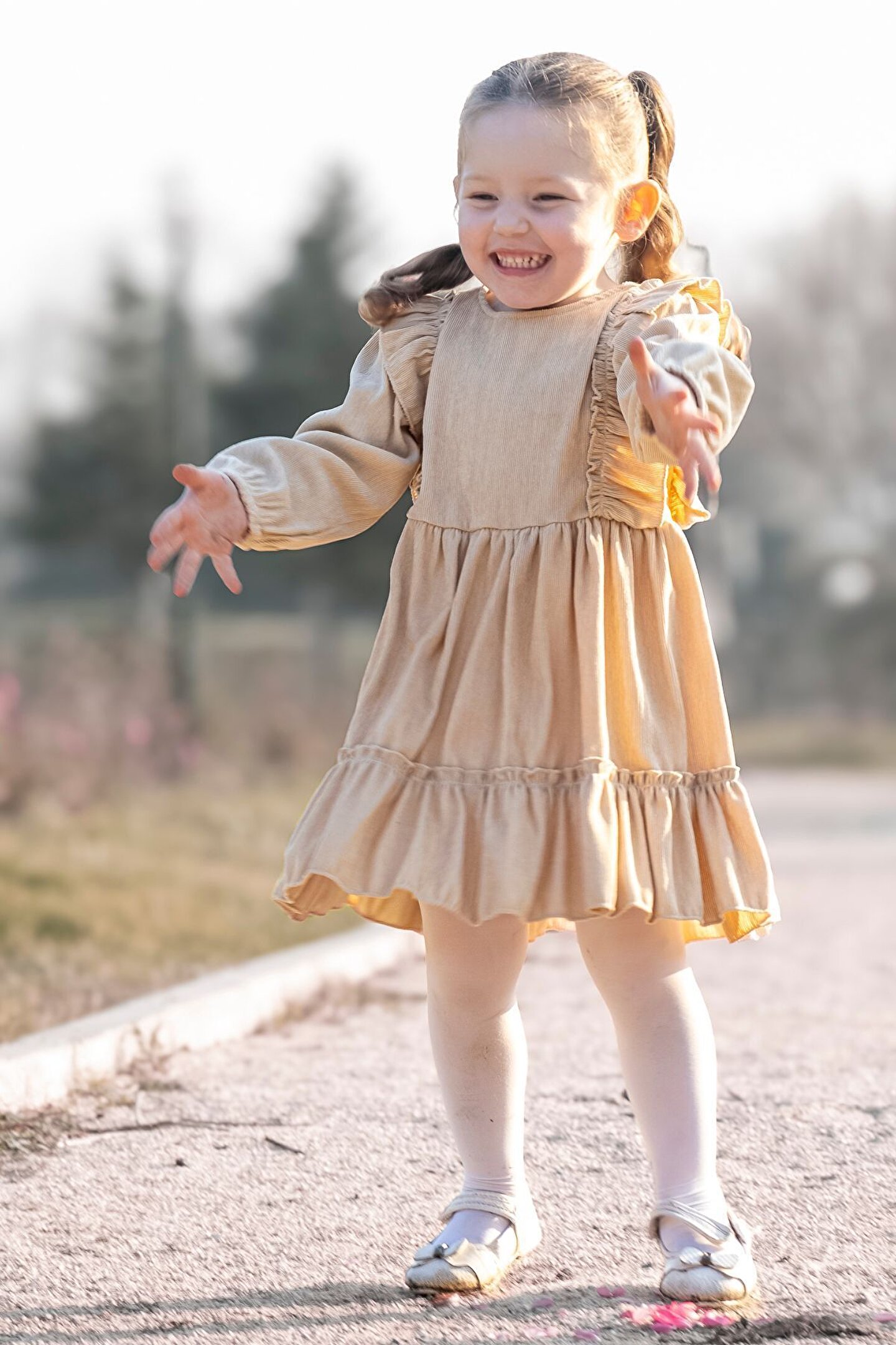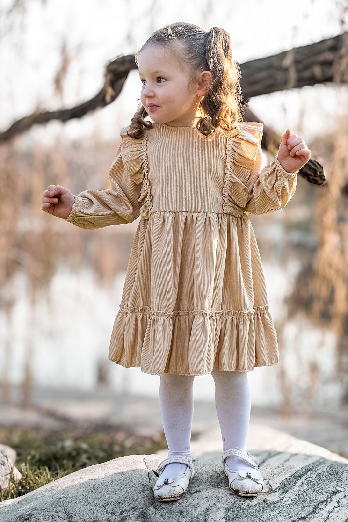 Klasik ve zamansız tarzın modern yorumuyla tasarlanmış, minik prenseslerin kalbini kazanan fırfır detaylı kız çocuk elbisesi, zarifliği ve rahatlığı bir araya getiriyor. ; İçi astarlı tasarımıyla her mevsimde rahatlıkla giyilebilir.Özellikler:Retro Tarz: Bu elbise, geçmişin zarafetini günümüz modasıyla harmanlayarak dikkat çekici bir retro tarz sunar.Fırfır Detaylar: Etek kısmında bulunan fırfır detayları, hareketli ve sevimli bir görünüm sağlar.İçi Astarlı: Astarı sayesinde cildi rahatsız etmeyen ve rahat bir giyim deneyimi sunan bir iç yapıya sahiptir.Yaş Aralığı: 2-5 yaş arası kız çocukları için uygun bir beden skalası sunar.Kullanım Alanı:Bu elbise, günlük kullanım için mükemmel bir seçenek olmakla birlikte, özel günlerde de şıklığını konuşturabilir. ; Doğum günü partileri, özel etkinlikler veya aile buluşmaları için idealdir.Avantajlar:Stil ve Rahatlık: Eşsiz tasarımıyla şıklığı, içi astarlı yapısıyla ise rahatlığı bir araya getirir.Dayanıklı Malzeme: Yüksek kaliteli ve dayanıklı kumaşlarıyla uzun ömürlü bir kullanım sağlar.Kolay Bakım: Makinede yıkanabilir özelliği sayesinde pratik bir şekilde temizlenebilir.Not: Renk ve beden seçenekleri mevcut olabilir. ; Ürününüzü seçerken istediğiniz renk ve bedeni kontrol etmeyi unutmayın.;