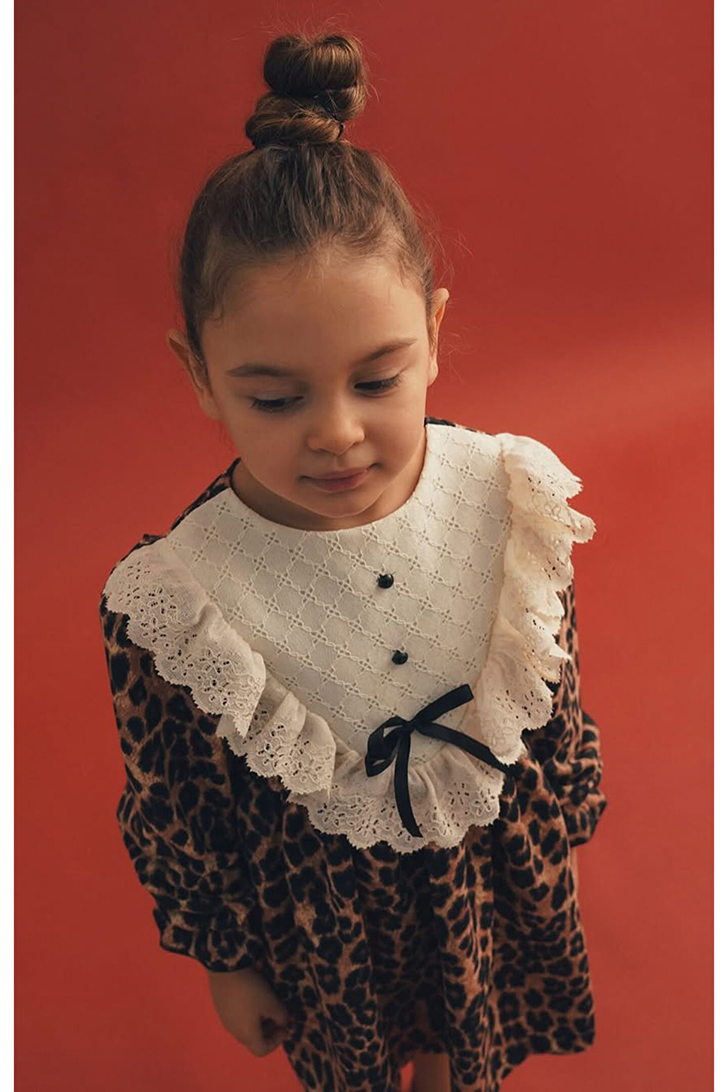 Mevsimlik Uzun Kollu Dantel Detaylı Kız Çocuk Elbisesi: Küçük prensesinizin yaz mevsiminde özel günlerde zarafetini ve şıklığını ön plana çıkaracak bu elbise, önünde bulunan fiyonk detayı ve dantel işlemeleriyle tasarlanmıştır.; Ayrıca etek kısmında bulunan yırtmaç detayı, hareket özgürlüğü sağlarken bebeğinizin zarif bir görünüm sergilemesini sağlar.; Özellikler: Dantel Detaylar: Elbisenin ön kısmında ve kollarda bulunan dantel detaylar, zarafet ve incelik katarken, küçük prensesinizin görünümünü daha etkileyici hale getirir.; Önünde Fiyonk Detayı: Elbisenin ön kısmında bulunan fiyonk detayı, sevimliliği ve şıklığı artırır.; Küçük prensesinizin görünümüne hoş bir dokunuş ekler.; Yırtmaç Detayı: Etek kısmında bulunan yırtmaç detayı, hareket özgürlüğü sağlarken, elbisenin tasarımına dinamizm katar.; Uzun Kollu Tasarım:Rahatlıkla giyilebilecek Uzun kollu tasarım, bebeğinizin serin kalmasını sağlar ve özgürce hareket etmesine olanak tanır.; Mevsimlik Kullanıma Uygun: Hafif yapısı ve nefes alabilen kumaşıyla yaz aylarında rahatlıkla giyilebilir.; Özel Günler İçin Uygun: Özel günlerde tercih edilebilecek şık tasarımıyla bebeğinizin her anında göz kamaştırmasını sağlar.; Bu yırtmaçlı, önü fiyonklu ve dantel detaylı Uzun kollu kız çocuk elbisesi, küçük prensesinizin serin ve şık kalmasını sağlarken, aynı zamanda özel günlerde de zarafetini tamamlar.; Zarif detaylarıyla bezenmiş bu elbise, bebeğinizin tarzını ve güzelliğini ön plana çıkarır.