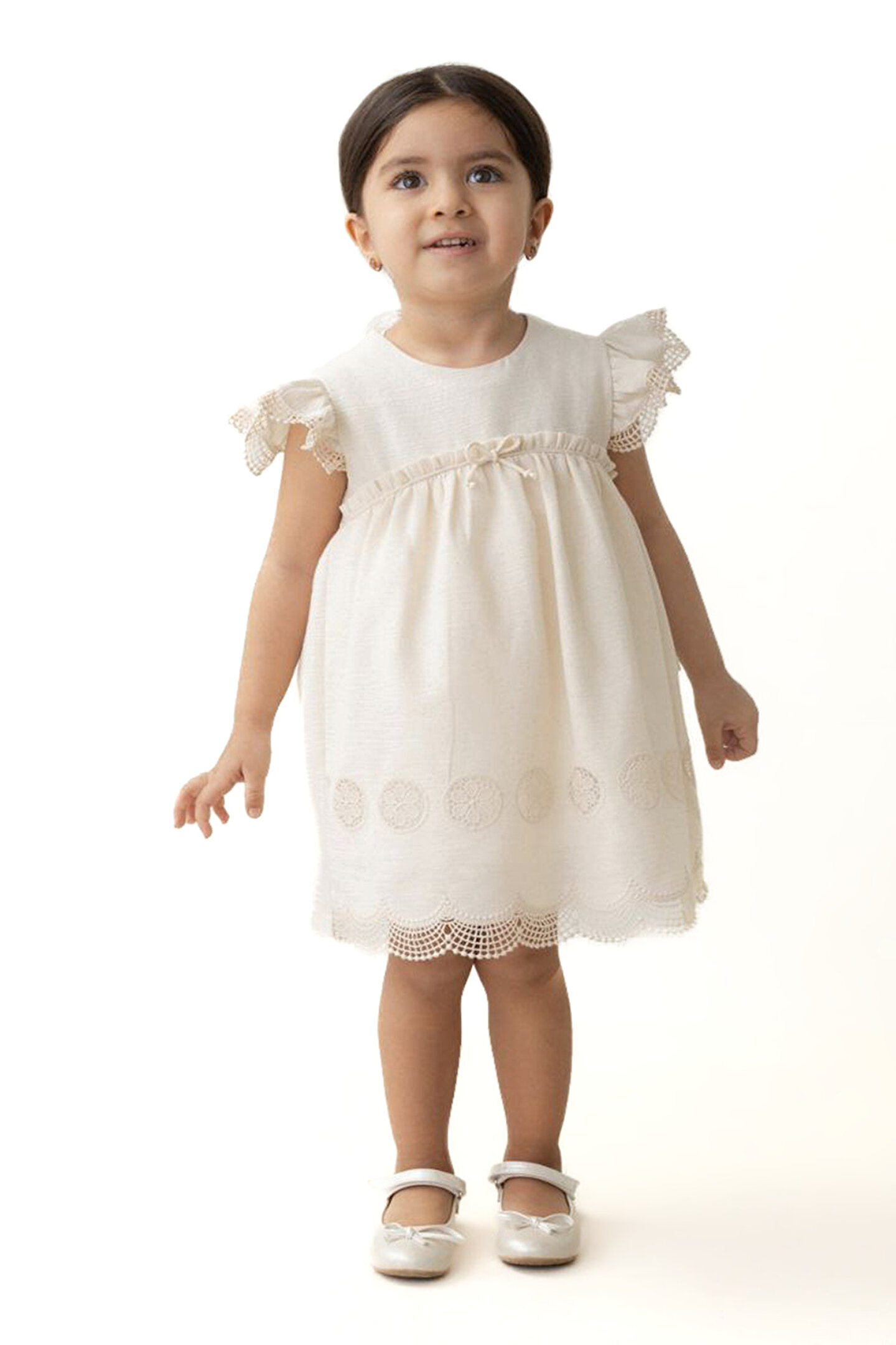 Yazlık Kısa Kollu Dantel Detaylı Kız Çocuk Elbisesi: Küçük prensesinizin yaz mevsiminde özel günlerde zarafetini ve şıklığını ön plana çıkaracak bu elbise, önünde bulunan fiyonk detayı ve dantel işlemeleriyle tasarlanmıştır.; Ayrıca etek kısmında bulunan yırtmaç detayı, hareket özgürlüğü sağlarken bebeğinizin zarif bir görünüm sergilemesini sağlar.; Özellikler: Dantel Detaylar: Elbisenin ön kısmında ve kollarda bulunan dantel detaylar, zarafet ve incelik katarken, küçük prensesinizin görünümünü daha etkileyici hale getirir.; Önünde Fiyonk Detayı: Elbisenin ön kısmında bulunan fiyonk detayı, sevimliliği ve şıklığı artırır.; Küçük prensesinizin görünümüne hoş bir dokunuş ekler.; Yırtmaç Detayı: Etek kısmında bulunan yırtmaç detayı, hareket özgürlüğü sağlarken, elbisenin tasarımına dinamizm katar.; Kısa Kollu Tasarım: Sıcak yaz günlerinde rahatlıkla giyilebilecek kısa kollu tasarım, bebeğinizin serin kalmasını sağlar ve özgürce hareket etmesine olanak tanır.; Yazlık Kullanıma Uygun: Hafif yapısı ve nefes alabilen kumaşıyla yaz aylarında rahatlıkla giyilebilir.; Özel Günler İçin Uygun: Özel günlerde tercih edilebilecek şık tasarımıyla bebeğinizin her anında göz kamaştırmasını sağlar.; Bu yırtmaçlı, önü fiyonklu ve dantel detaylı kısa kollu kız çocuk elbisesi, küçük prensesinizin yazın serin ve şık kalmasını sağlarken, aynı zamanda özel günlerde de zarafetini tamamlar.; Zarif detaylarıyla bezenmiş bu elbise, bebeğinizin tarzını ve güzelliğini ön plana çıkarır.