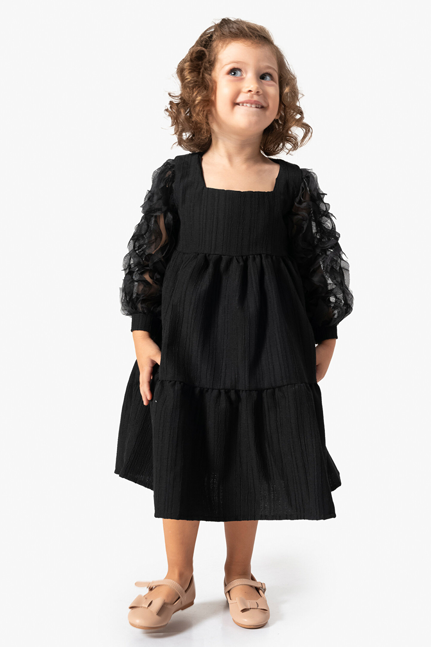 Kız Bebek Elbise Kız Çocuk Elbise Doğum Günü Parti Düğün Tütü Tüllü Uzun Kollu Astarlı Elbise