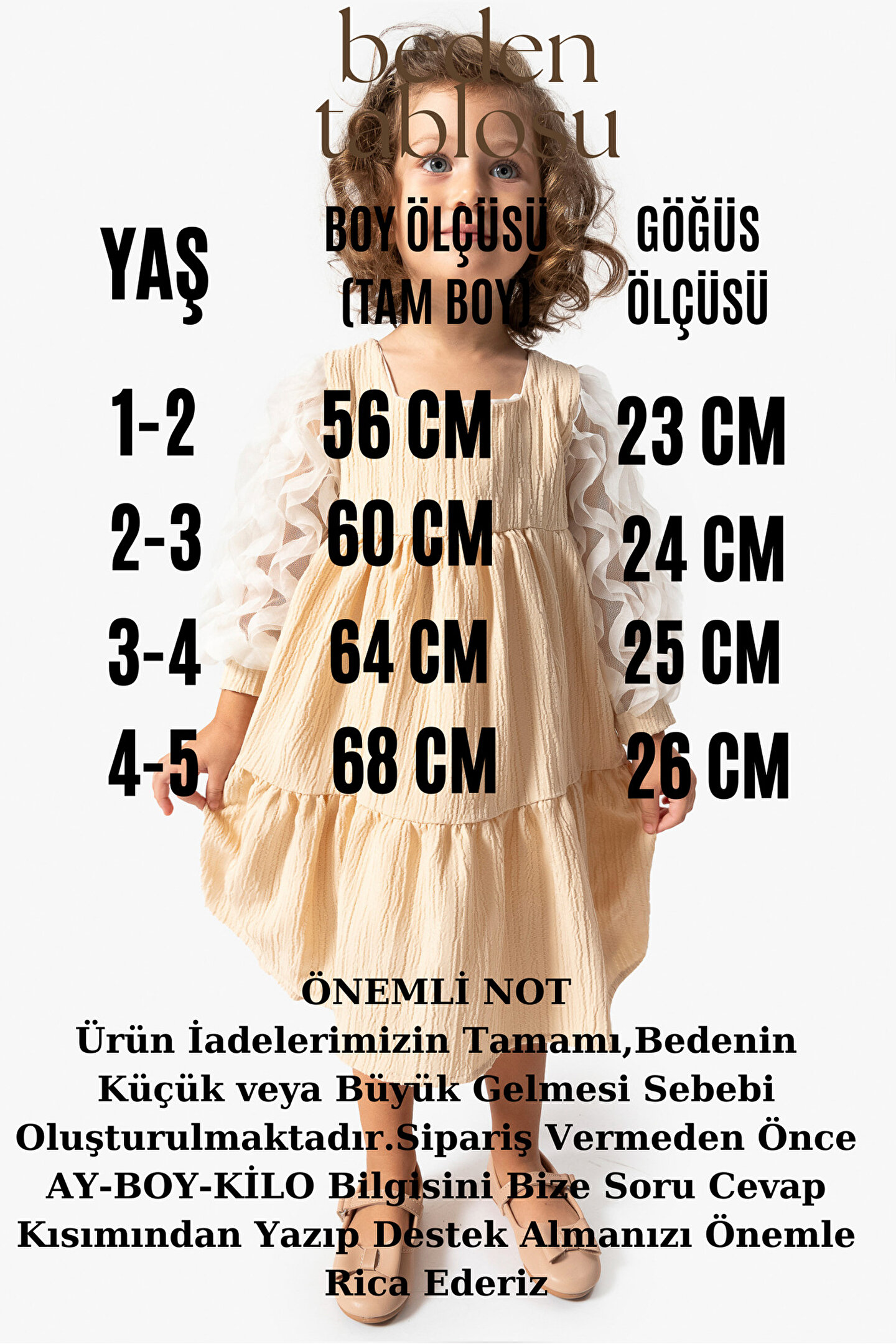 Mevsimlik Uzun Kollu Dantel Detaylı Kız Çocuk Elbisesi: Küçük prensesinizin yaz mevsiminde özel günlerde zarafetini ve şıklığını ön plana çıkaracak bu elbise, önünde bulunan fiyonk detayı ve dantel işlemeleriyle tasarlanmıştır.; Ayrıca etek kısmında bulunan yırtmaç detayı, hareket özgürlüğü sağlarken bebeğinizin zarif bir görünüm sergilemesini sağlar.; Özellikler: Dantel Detaylar: Elbisenin ön kısmında ve kollarda bulunan dantel detaylar, zarafet ve incelik katarken, küçük prensesinizin görünümünü daha etkileyici hale getirir.; Önünde Fiyonk Detayı: Elbisenin ön kısmında bulunan fiyonk detayı, sevimliliği ve şıklığı artırır.; Küçük prensesinizin görünümüne hoş bir dokunuş ekler.; Yırtmaç Detayı: Etek kısmında bulunan yırtmaç detayı, hareket özgürlüğü sağlarken, elbisenin tasarımına dinamizm katar.; Uzun Kollu Tasarım:Rahatlıkla giyilebilecek Uzun kollu tasarım, bebeğinizin serin kalmasını sağlar ve özgürce hareket etmesine olanak tanır.; Mevsimlik Kullanıma Uygun: Hafif yapısı ve nefes alabilen kumaşıyla yaz aylarında rahatlıkla giyilebilir.; Özel Günler İçin Uygun: Özel günlerde tercih edilebilecek şık tasarımıyla bebeğinizin her anında göz kamaştırmasını sağlar.; Bu yırtmaçlı, önü fiyonklu ve dantel detaylı Uzun kollu kız çocuk elbisesi, küçük prensesinizin serin ve şık kalmasını sağlarken, aynı zamanda özel günlerde de zarafetini tamamlar.; Zarif detaylarıyla bezenmiş bu elbise, bebeğinizin tarzını ve güzelliğini ön plana çıkarır.