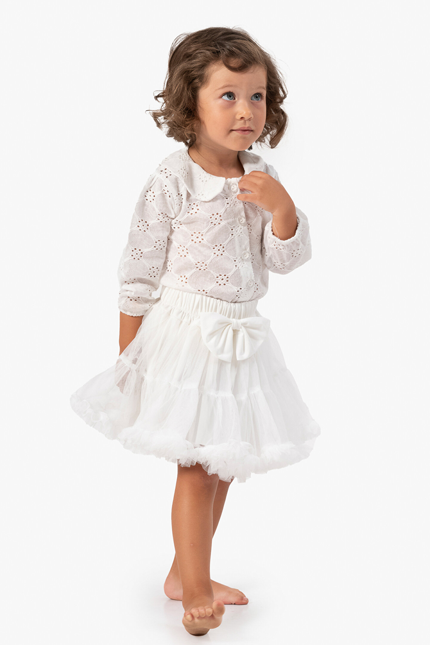 Mevsimlik Uzun Kollu Dantel Detaylı Kız Çocuk Elbisesi: Küçük prensesinizin yaz mevsiminde özel günlerde zarafetini ve şıklığını ön plana çıkaracak bu elbise, önünde bulunan fiyonk detayı ve dantel işlemeleriyle tasarlanmıştır.; ; Ayrıca etek kısmında bulunan yırtmaç detayı, hareket özgürlüğü sağlarken bebeğinizin zarif bir görünüm sergilemesini sağlar.; ; Özellikler: Dantel Detaylar: Elbisenin ön kısmında ve kollarda bulunan dantel detaylar, zarafet ve incelik katarken, küçük prensesinizin görünümünü daha etkileyici hale getirir.; ; Önünde Fiyonk Detayı: Elbisenin ön kısmında bulunan fiyonk detayı, sevimliliği ve şıklığı artırır.; ; Küçük prensesinizin görünümüne hoş bir dokunuş ekler.; ; Yırtmaç Detayı: Etek kısmında bulunan yırtmaç detayı, hareket özgürlüğü sağlarken, elbisenin tasarımına dinamizm katar.; ; Uzun Kollu Tasarım:Rahatlıkla giyilebilecek Uzun kollu tasarım, bebeğinizin serin kalmasını sağlar ve özgürce hareket etmesine olanak tanır.; ; Mevsimlik Kullanıma Uygun: Hafif yapısı ve nefes alabilen kumaşıyla yaz aylarında rahatlıkla giyilebilir.; ; Özel Günler İçin Uygun: Özel günlerde tercih edilebilecek şık tasarımıyla bebeğinizin her anında göz kamaştırmasını sağlar.; ; Bu yırtmaçlı, önü fiyonklu ve dantel detaylı Uzun kollu kız çocuk elbisesi, küçük prensesinizin serin ve şık kalmasını sağlarken, aynı zamanda özel günlerde de zarafetini tamamlar.; ; Zarif detaylarıyla bezenmiş bu elbise, bebeğinizin tarzını ve güzelliğini ön plana çıkarır.;