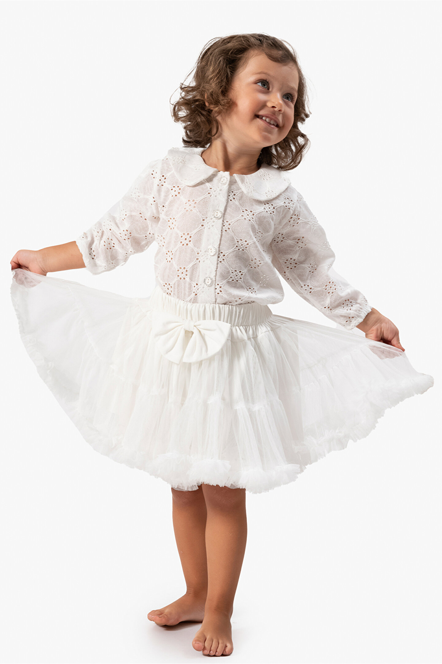 Mevsimlik Uzun Kollu Dantel Detaylı Kız Çocuk Elbisesi: Küçük prensesinizin yaz mevsiminde özel günlerde zarafetini ve şıklığını ön plana çıkaracak bu elbise, önünde bulunan fiyonk detayı ve dantel işlemeleriyle tasarlanmıştır.; ; Ayrıca etek kısmında bulunan yırtmaç detayı, hareket özgürlüğü sağlarken bebeğinizin zarif bir görünüm sergilemesini sağlar.; ; Özellikler: Dantel Detaylar: Elbisenin ön kısmında ve kollarda bulunan dantel detaylar, zarafet ve incelik katarken, küçük prensesinizin görünümünü daha etkileyici hale getirir.; ; Önünde Fiyonk Detayı: Elbisenin ön kısmında bulunan fiyonk detayı, sevimliliği ve şıklığı artırır.; ; Küçük prensesinizin görünümüne hoş bir dokunuş ekler.; ; Yırtmaç Detayı: Etek kısmında bulunan yırtmaç detayı, hareket özgürlüğü sağlarken, elbisenin tasarımına dinamizm katar.; ; Uzun Kollu Tasarım:Rahatlıkla giyilebilecek Uzun kollu tasarım, bebeğinizin serin kalmasını sağlar ve özgürce hareket etmesine olanak tanır.; ; Mevsimlik Kullanıma Uygun: Hafif yapısı ve nefes alabilen kumaşıyla yaz aylarında rahatlıkla giyilebilir.; ; Özel Günler İçin Uygun: Özel günlerde tercih edilebilecek şık tasarımıyla bebeğinizin her anında göz kamaştırmasını sağlar.; ; Bu yırtmaçlı, önü fiyonklu ve dantel detaylı Uzun kollu kız çocuk elbisesi, küçük prensesinizin serin ve şık kalmasını sağlarken, aynı zamanda özel günlerde de zarafetini tamamlar.; ; Zarif detaylarıyla bezenmiş bu elbise, bebeğinizin tarzını ve güzelliğini ön plana çıkarır.;