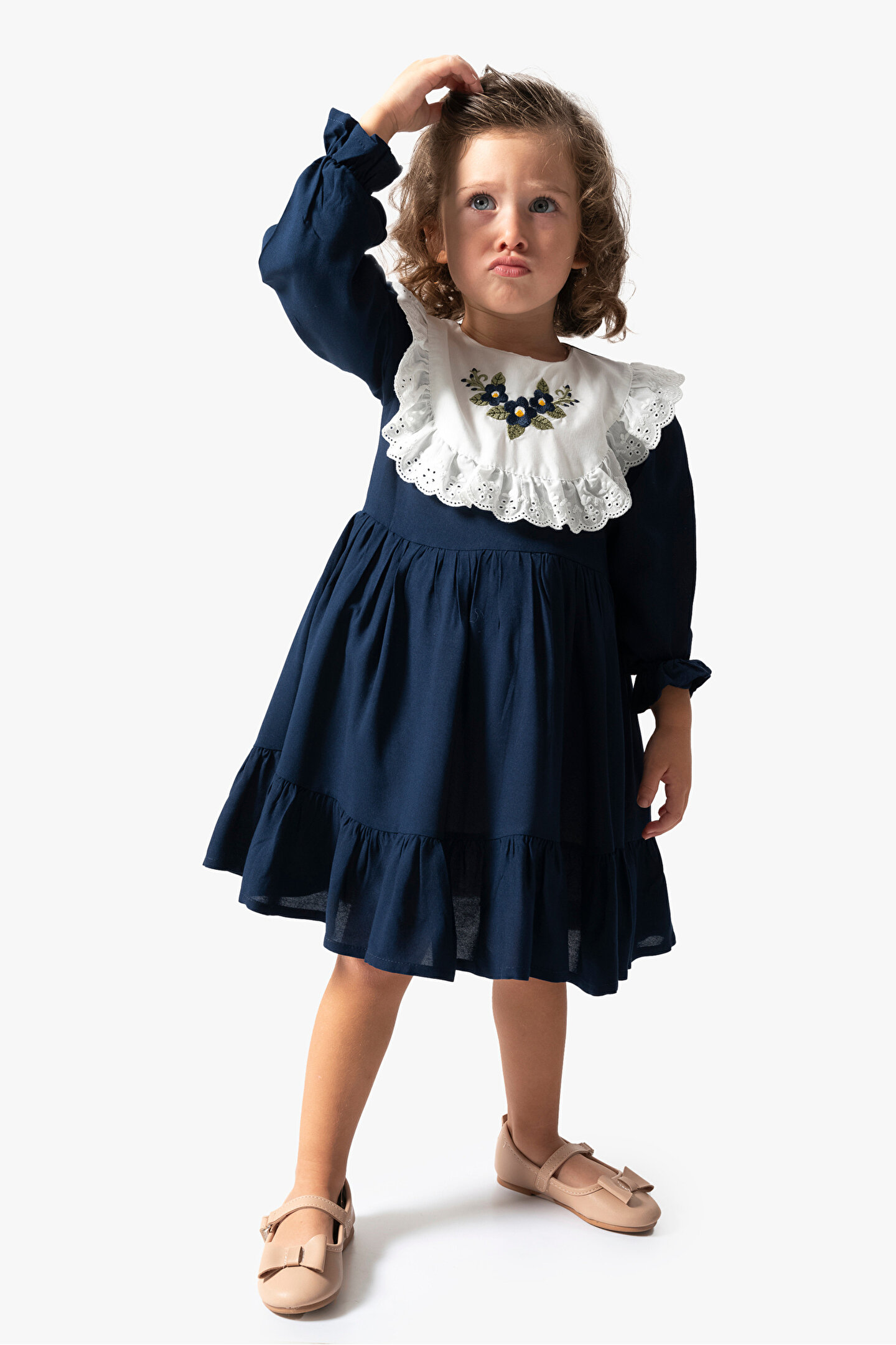 Mevsimlik Uzun Kollu Dantel Detaylı Kız Çocuk Elbisesi: Küçük prensesinizin yaz mevsiminde özel günlerde zarafetini ve şıklığını ön plana çıkaracak bu elbise, önünde bulunan fiyonk detayı ve dantel işlemeleriyle tasarlanmıştır.; Ayrıca etek kısmında bulunan yırtmaç detayı, hareket özgürlüğü sağlarken bebeğinizin zarif bir görünüm sergilemesini sağlar.; Özellikler: Dantel Detaylar: Elbisenin ön kısmında ve kollarda bulunan dantel detaylar, zarafet ve incelik katarken, küçük prensesinizin görünümünü daha etkileyici hale getirir.; Önünde Fiyonk Detayı: Elbisenin ön kısmında bulunan fiyonk detayı, sevimliliği ve şıklığı artırır.; Küçük prensesinizin görünümüne hoş bir dokunuş ekler.; Yırtmaç Detayı: Etek kısmında bulunan yırtmaç detayı, hareket özgürlüğü sağlarken, elbisenin tasarımına dinamizm katar.; Uzun Kollu Tasarım:Rahatlıkla giyilebilecek Uzun kollu tasarım, bebeğinizin serin kalmasını sağlar ve özgürce hareket etmesine olanak tanır.; Mevsimlik Kullanıma Uygun: Hafif yapısı ve nefes alabilen kumaşıyla yaz aylarında rahatlıkla giyilebilir.; Özel Günler İçin Uygun: Özel günlerde tercih edilebilecek şık tasarımıyla bebeğinizin her anında göz kamaştırmasını sağlar.; Bu yırtmaçlı, önü fiyonklu ve dantel detaylı Uzun kollu kız çocuk elbisesi, küçük prensesinizin serin ve şık kalmasını sağlarken, aynı zamanda özel günlerde de zarafetini tamamlar.; Zarif detaylarıyla bezenmiş bu elbise, bebeğinizin tarzını ve güzelliğini ön plana çıkarır.