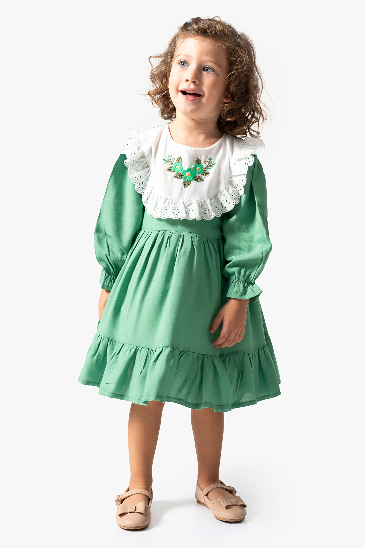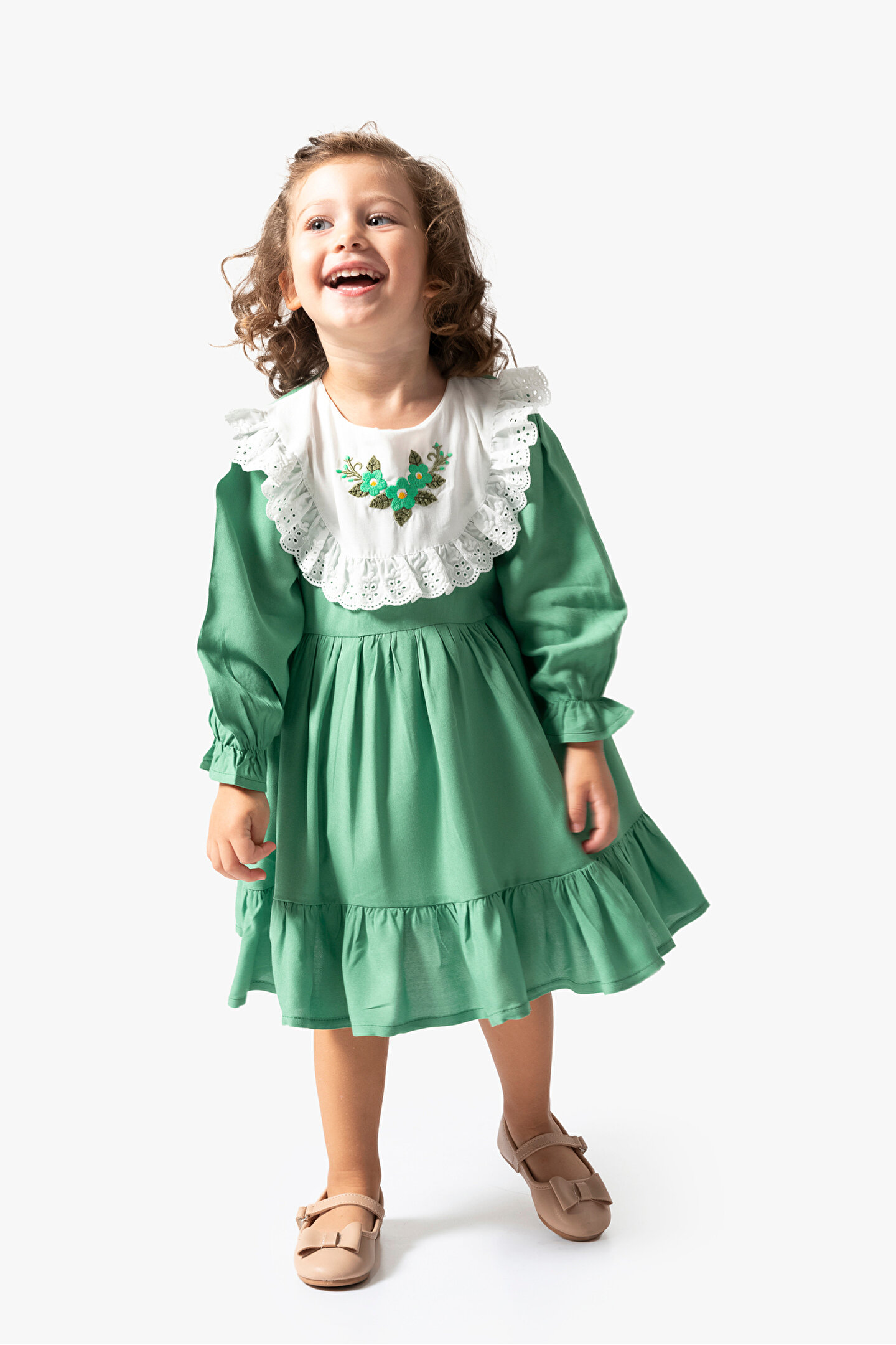 Mevsimlik Uzun Kollu Dantel Detaylı Kız Çocuk Elbisesi: Küçük prensesinizin yaz mevsiminde özel günlerde zarafetini ve şıklığını ön plana çıkaracak bu elbise, önünde bulunan fiyonk detayı ve dantel işlemeleriyle tasarlanmıştır.; Ayrıca etek kısmında bulunan yırtmaç detayı, hareket özgürlüğü sağlarken bebeğinizin zarif bir görünüm sergilemesini sağlar.; Özellikler: Dantel Detaylar: Elbisenin ön kısmında ve kollarda bulunan dantel detaylar, zarafet ve incelik katarken, küçük prensesinizin görünümünü daha etkileyici hale getirir.; Önünde Fiyonk Detayı: Elbisenin ön kısmında bulunan fiyonk detayı, sevimliliği ve şıklığı artırır.; Küçük prensesinizin görünümüne hoş bir dokunuş ekler.; Yırtmaç Detayı: Etek kısmında bulunan yırtmaç detayı, hareket özgürlüğü sağlarken, elbisenin tasarımına dinamizm katar.; Uzun Kollu Tasarım:Rahatlıkla giyilebilecek Uzun kollu tasarım, bebeğinizin serin kalmasını sağlar ve özgürce hareket etmesine olanak tanır.; Mevsimlik Kullanıma Uygun: Hafif yapısı ve nefes alabilen kumaşıyla yaz aylarında rahatlıkla giyilebilir.; Özel Günler İçin Uygun: Özel günlerde tercih edilebilecek şık tasarımıyla bebeğinizin her anında göz kamaştırmasını sağlar.; Bu yırtmaçlı, önü fiyonklu ve dantel detaylı Uzun kollu kız çocuk elbisesi, küçük prensesinizin serin ve şık kalmasını sağlarken, aynı zamanda özel günlerde de zarafetini tamamlar.; Zarif detaylarıyla bezenmiş bu elbise, bebeğinizin tarzını ve güzelliğini ön plana çıkarır.