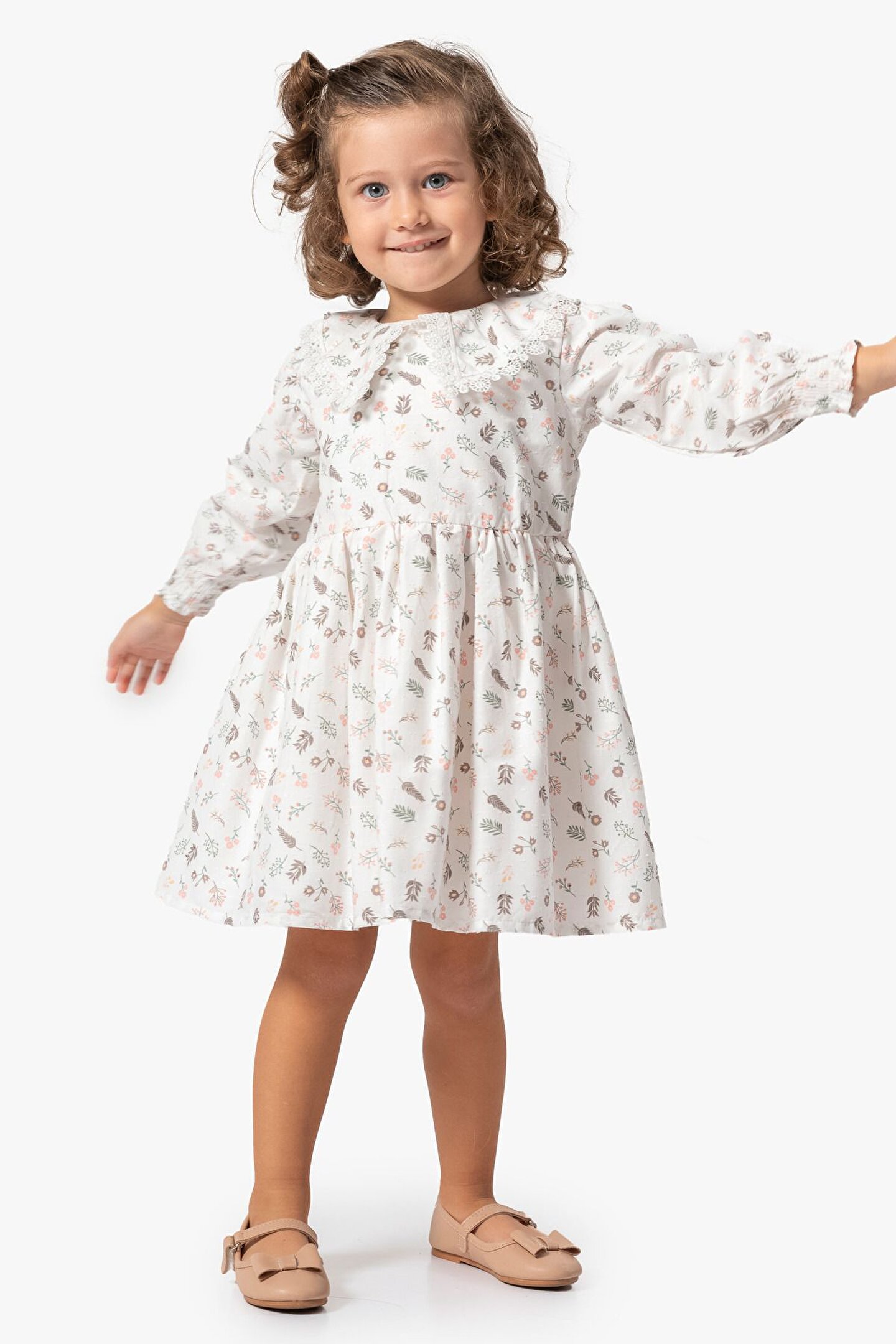 Kız Bebek Elbise Kız Çocuk Elbise Yakalı Doğum Günü Parti Düğün Özel Gün Uzun Kol Astarlı Çiçekli