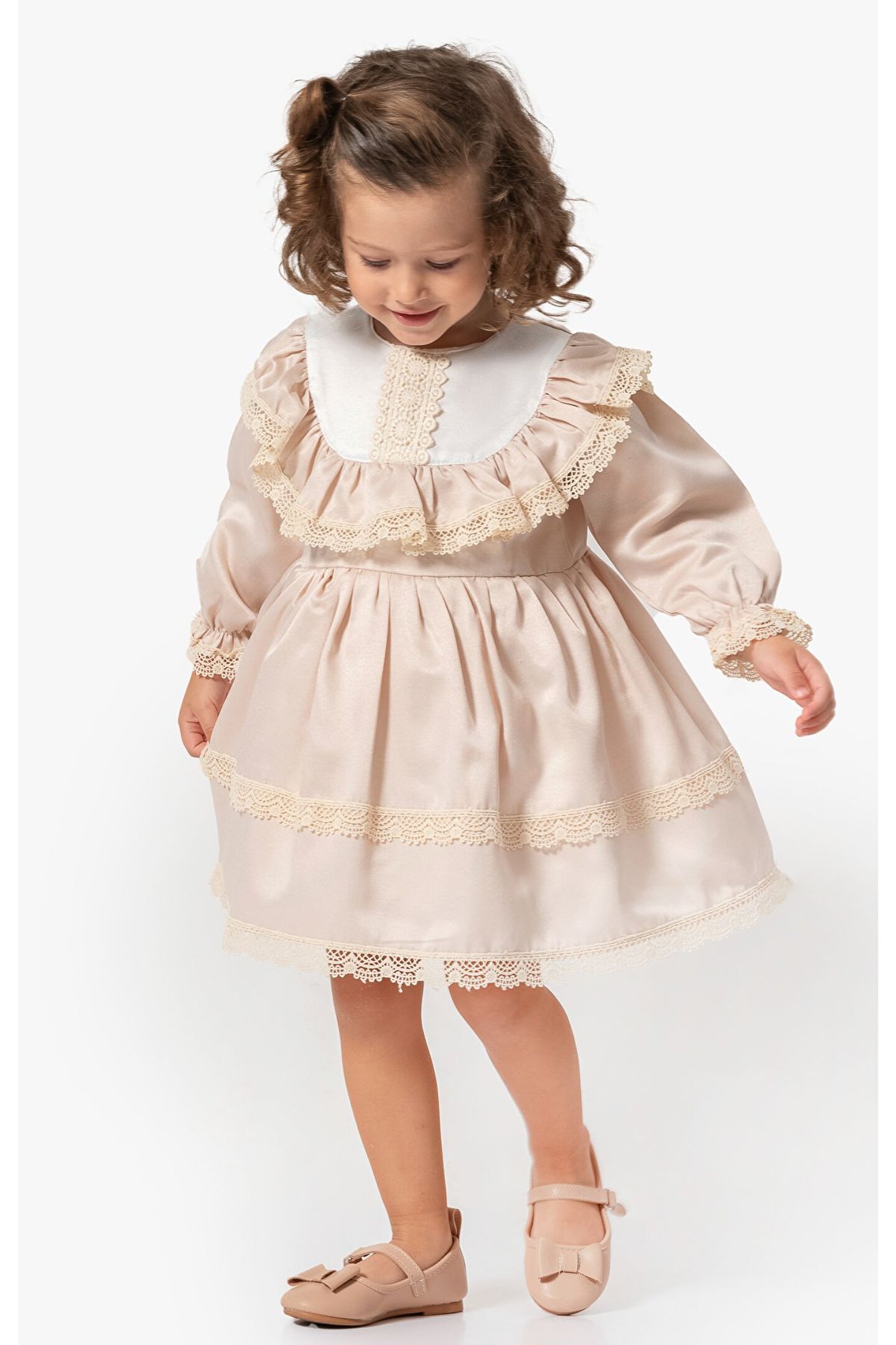 Kız Bebek Elbise Kız Çocuk Elbise Doğum Günü Parti Düğün Elbise Uzun Kol Astarlı Dantelli Bebek Giyi