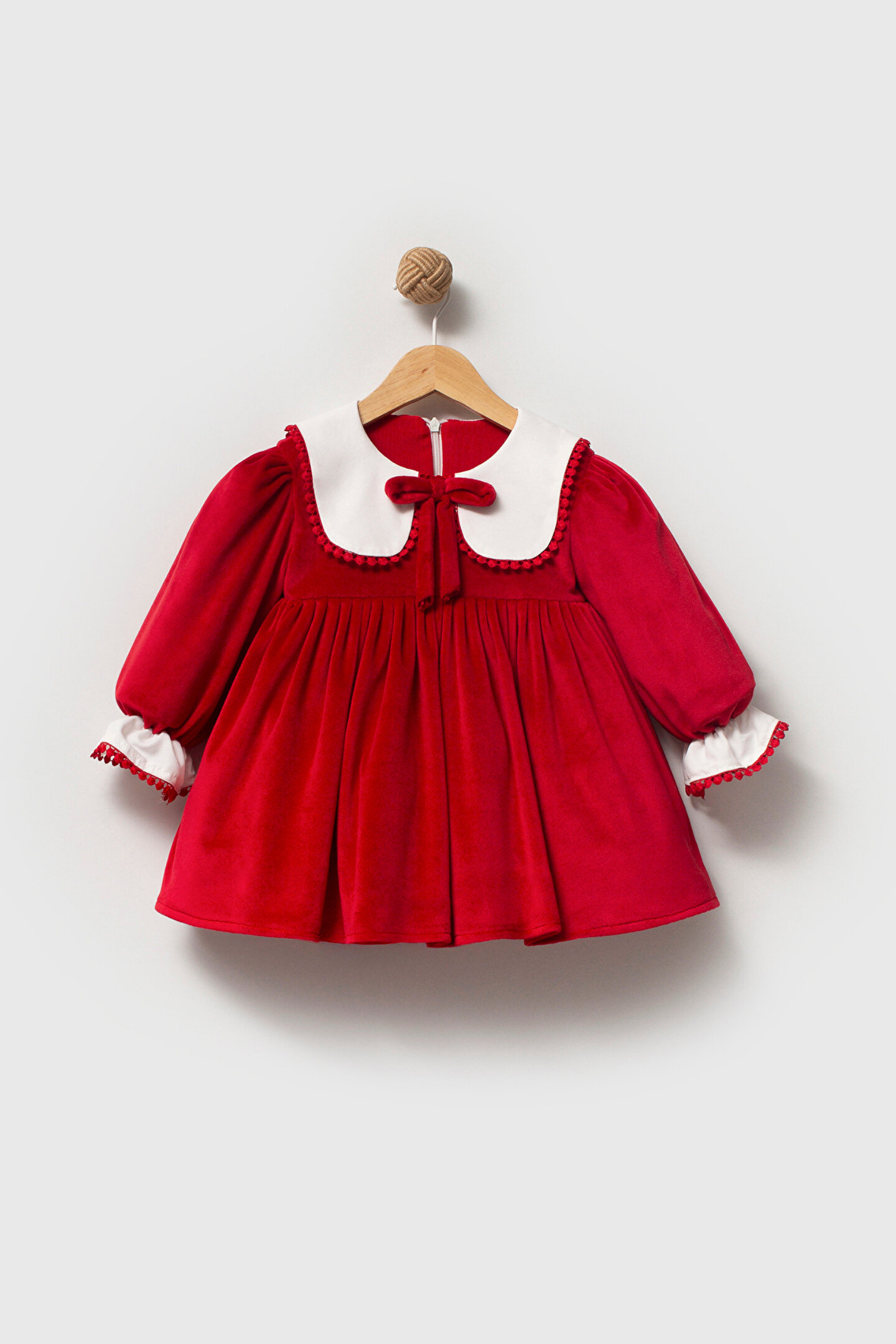 Mevsimlik Uzun Kollu Dantel Detaylı Kız Çocuk Elbisesi: Küçük prensesinizin özel günlerde zarafetini ve şıklığını ön plana çıkaracak bu elbise, önünde bulunan Yakalı fiyonk detayı ve dantel işlemeleriyle tasarlanmıştır.; Özellikler: Dantel Detaylar: Elbisenin ön kısmında ve kollarda bulunan dantel detaylar, zarafet ve incelik katarken, küçük prensesinizin görünümünü daha etkileyici hale getirir.; Önünde Yakalı Fiyonk Detayı: Elbisenin ön kısmında bulunan fiyonk detayı, sevimliliği ve şıklığı artırır.; Küçük prensesinizin görünümüne hoş bir dokunuş ekler.; Uzun Kollu Tasarım:Rahatlıkla giyilebilecek Uzun kollu tasarım, bebeğinizin serin kalmasını sağlar ve özgürce hareket etmesine olanak tanır.; Mevsimlik Kullanıma Uygun: Hafif yapısı ve nefes alabilen kumaşıyla rahatlıkla giyilebilir.; Özel Günler İçin Uygun: Özel günlerde tercih edilebilecek şık tasarımıyla bebeğinizin her anında göz kamaştırmasını sağlar.; Bu önü Yakalı fiyonklu ve dantel detaylı Uzun kollu kız çocuk elbisesi, küçük prensesinizin şık kalmasını sağlarken, aynı zamanda özel günlerde de zarafetini tamamlar.; Zarif detaylarıyla bezenmiş bu elbise, bebeğinizin tarzını ve güzelliğini ön plana çıkarır.