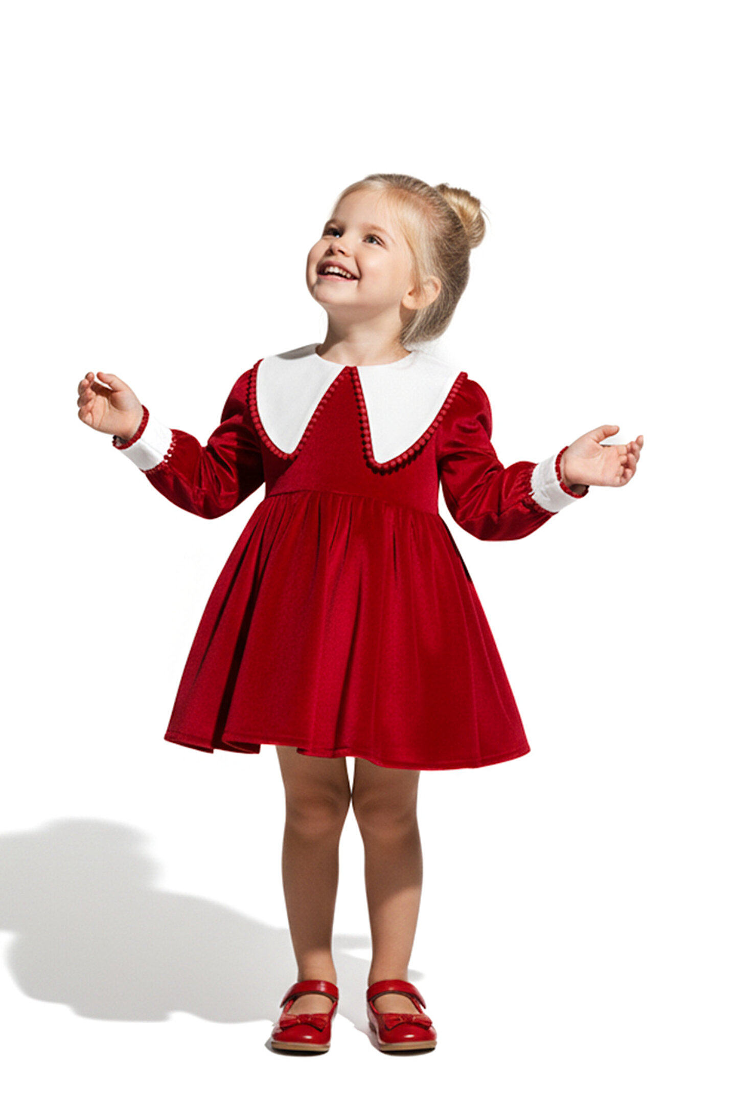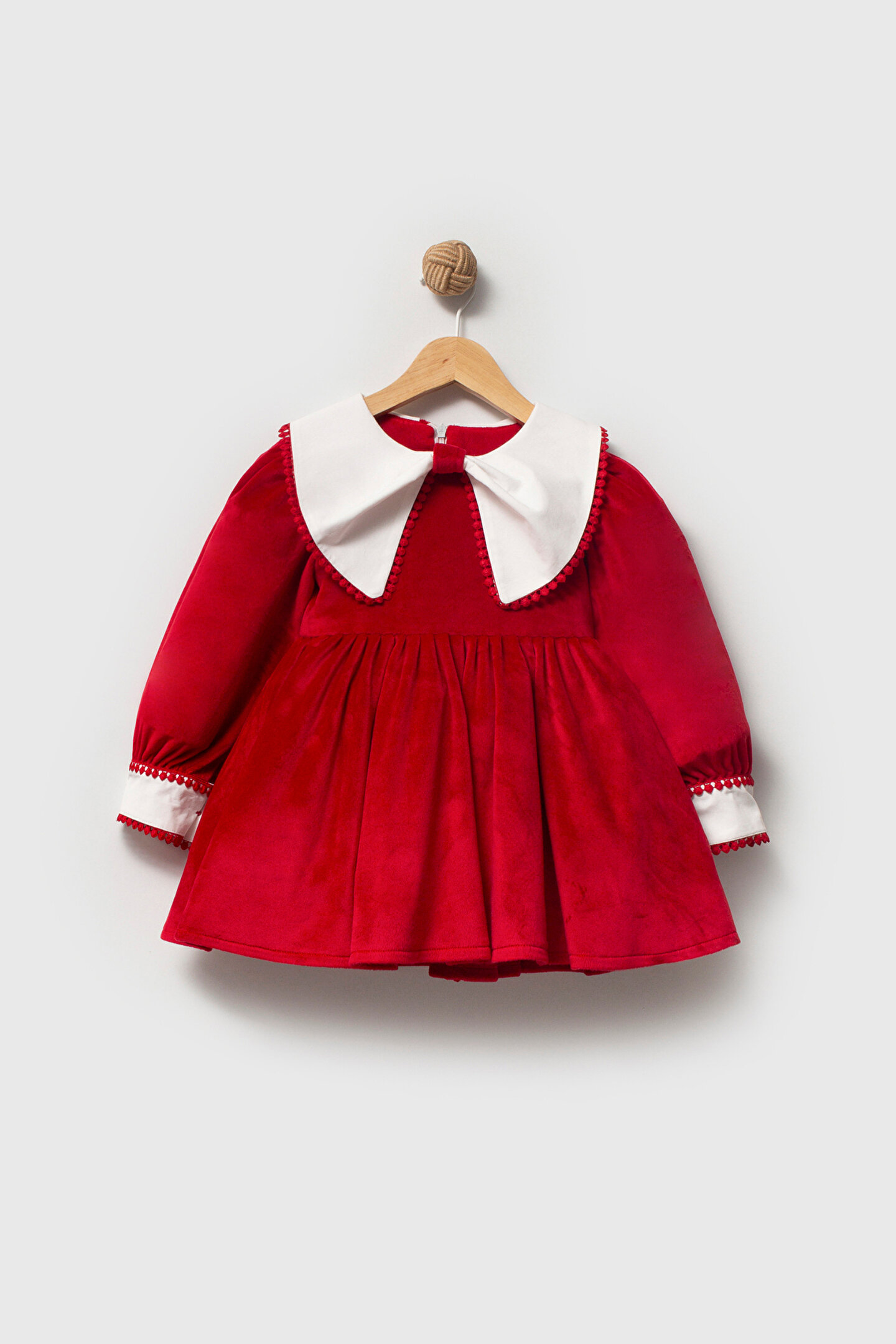 Mevsimlik Uzun Kollu Dantel Detaylı Kız Çocuk Elbisesi: Küçük prensesinizin özel günlerde zarafetini ve şıklığını ön plana çıkaracak bu elbise, önünde bulunan Yakalı fiyonk detayı ve dantel işlemeleriyle tasarlanmıştır.; Özellikler: Dantel Detaylar: Elbisenin ön kısmında ve kollarda bulunan dantel detaylar, zarafet ve incelik katarken, küçük prensesinizin görünümünü daha etkileyici hale getirir.; Önünde Yakalı Fiyonk Detayı: Elbisenin ön kısmında bulunan fiyonk detayı, sevimliliği ve şıklığı artırır.; Küçük prensesinizin görünümüne hoş bir dokunuş ekler.; Uzun Kollu Tasarım:Rahatlıkla giyilebilecek Uzun kollu tasarım, bebeğinizin serin kalmasını sağlar ve özgürce hareket etmesine olanak tanır.; Mevsimlik Kullanıma Uygun: Hafif yapısı ve nefes alabilen kumaşıyla rahatlıkla giyilebilir.; Özel Günler İçin Uygun: Özel günlerde tercih edilebilecek şık tasarımıyla bebeğinizin her anında göz kamaştırmasını sağlar.; Bu önü Yakalı fiyonklu ve dantel detaylı Uzun kollu kız çocuk elbisesi, küçük prensesinizin şık kalmasını sağlarken, aynı zamanda özel günlerde de zarafetini tamamlar.; Zarif detaylarıyla bezenmiş bu elbise, bebeğinizin tarzını ve güzelliğini ön plana çıkarır.