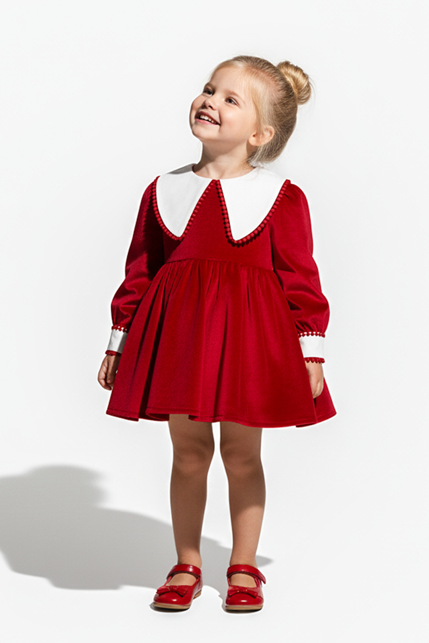 Mevsimlik Uzun Kollu Dantel Detaylı Kız Çocuk Elbisesi: Küçük prensesinizin özel günlerde zarafetini ve şıklığını ön plana çıkaracak bu elbise, önünde bulunan Yakalı fiyonk detayı ve dantel işlemeleriyle tasarlanmıştır.; Özellikler: Dantel Detaylar: Elbisenin ön kısmında ve kollarda bulunan dantel detaylar, zarafet ve incelik katarken, küçük prensesinizin görünümünü daha etkileyici hale getirir.; Önünde Yakalı Fiyonk Detayı: Elbisenin ön kısmında bulunan fiyonk detayı, sevimliliği ve şıklığı artırır.; Küçük prensesinizin görünümüne hoş bir dokunuş ekler.; Uzun Kollu Tasarım:Rahatlıkla giyilebilecek Uzun kollu tasarım, bebeğinizin serin kalmasını sağlar ve özgürce hareket etmesine olanak tanır.; Mevsimlik Kullanıma Uygun: Hafif yapısı ve nefes alabilen kumaşıyla rahatlıkla giyilebilir.; Özel Günler İçin Uygun: Özel günlerde tercih edilebilecek şık tasarımıyla bebeğinizin her anında göz kamaştırmasını sağlar.; Bu önü Yakalı fiyonklu ve dantel detaylı Uzun kollu kız çocuk elbisesi, küçük prensesinizin şık kalmasını sağlarken, aynı zamanda özel günlerde de zarafetini tamamlar.; Zarif detaylarıyla bezenmiş bu elbise, bebeğinizin tarzını ve güzelliğini ön plana çıkarır.