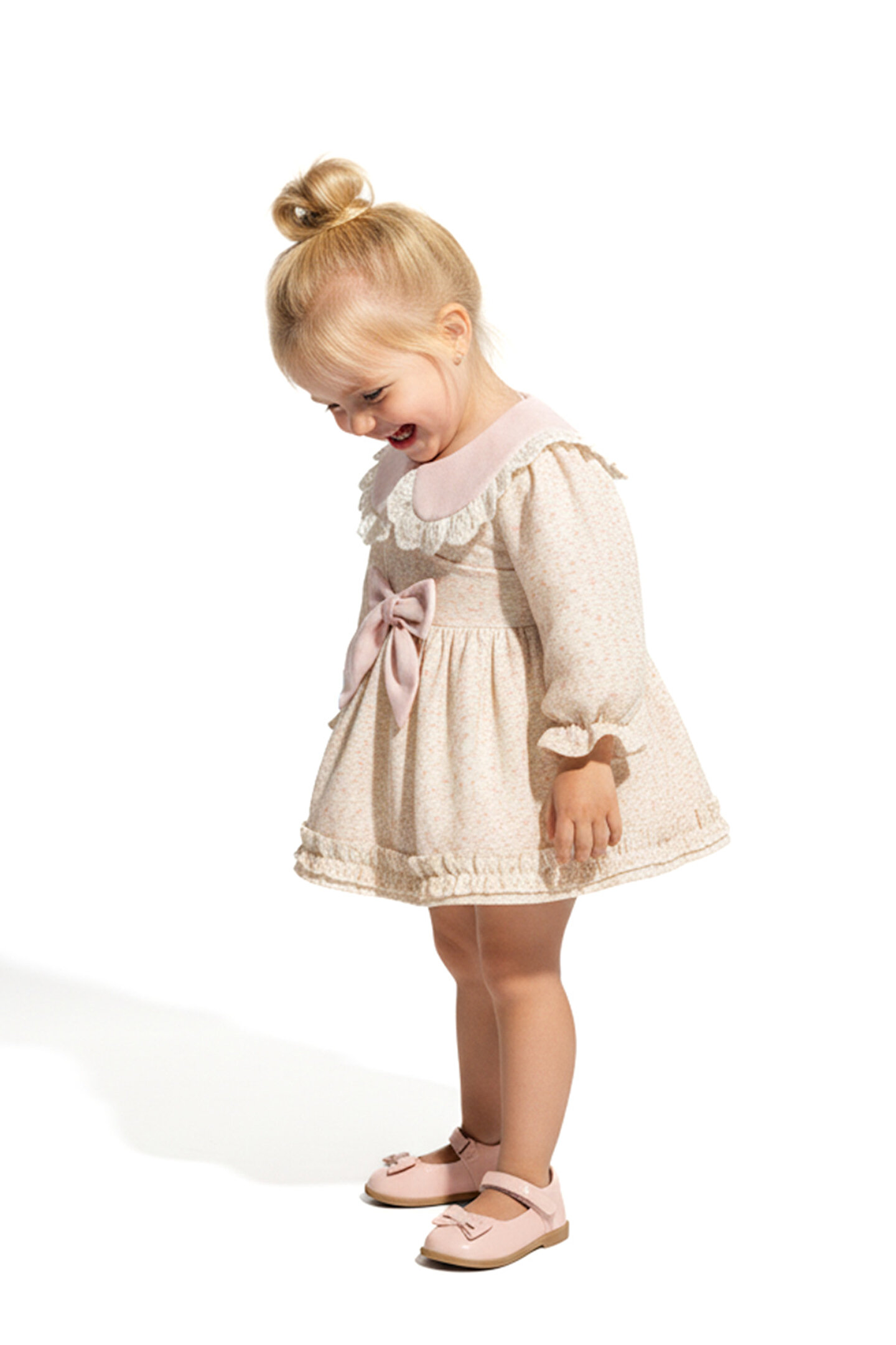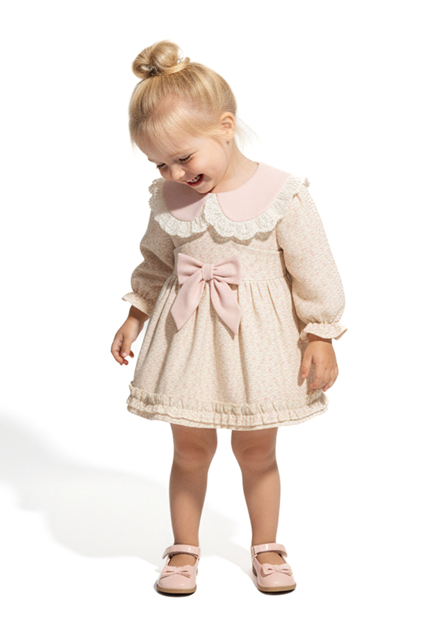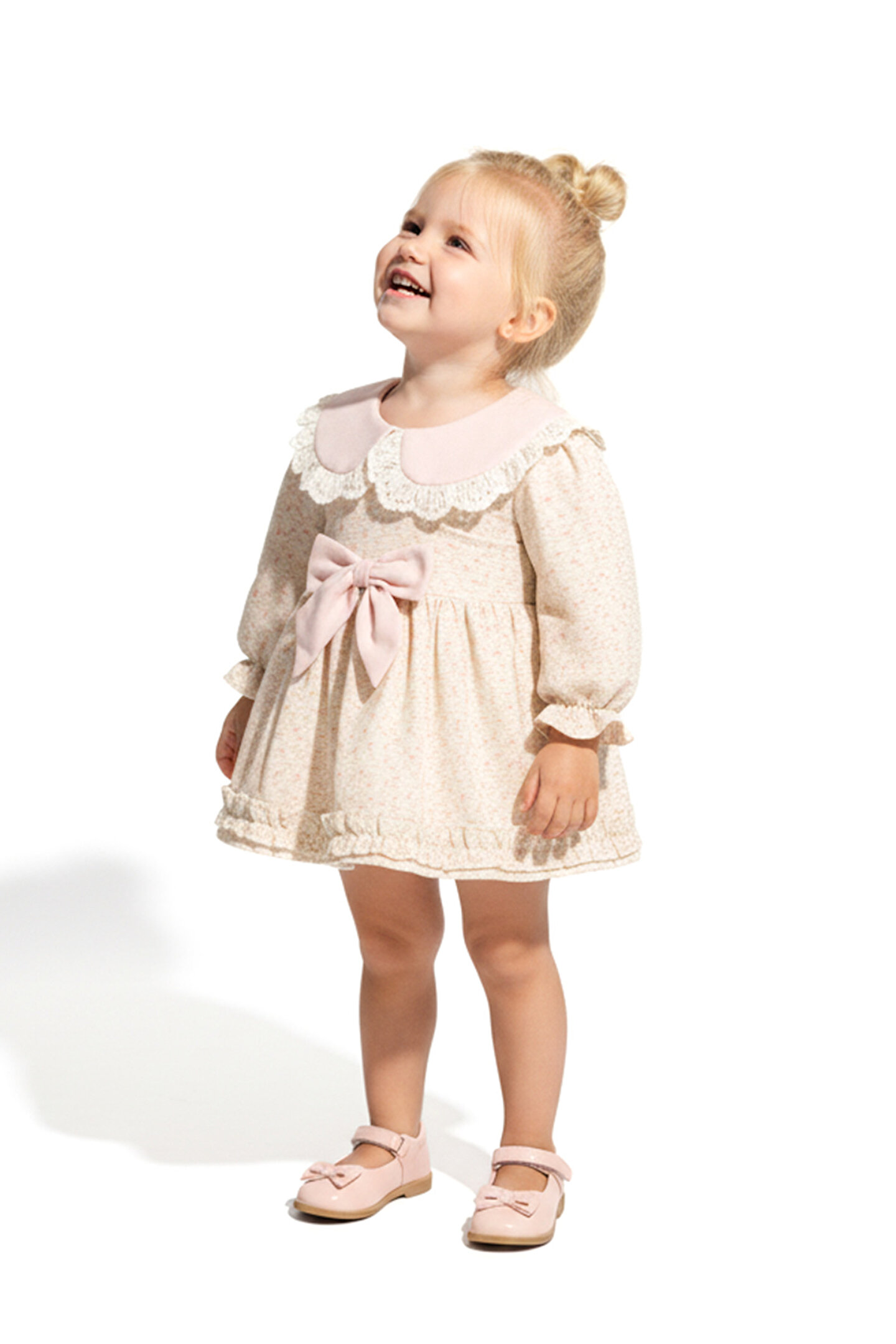 Mevsimlik Uzun Kollu Dantel Detaylı Kız Çocuk Elbisesi: Küçük prensesinizin özel günlerde zarafetini ve şıklığını ön plana çıkaracak bu elbise, önünde bulunan Yakalı fiyonk detayı ve dantel işlemeleriyle tasarlanmıştır.; Özellikler: Dantel Detaylar: Elbisenin ön kısmında ve kollarda bulunan dantel detaylar, zarafet ve incelik katarken, küçük prensesinizin görünümünü daha etkileyici hale getirir.; Önünde Yakalı Fiyonk Detayı: Elbisenin ön kısmında bulunan fiyonk detayı, sevimliliği ve şıklığı artırır.; Küçük prensesinizin görünümüne hoş bir dokunuş ekler.; Uzun Kollu Tasarım:Rahatlıkla giyilebilecek Uzun kollu tasarım, bebeğinizin serin kalmasını sağlar ve özgürce hareket etmesine olanak tanır.; Mevsimlik Kullanıma Uygun: Hafif yapısı ve nefes alabilen kumaşıyla rahatlıkla giyilebilir.; Özel Günler İçin Uygun: Özel günlerde tercih edilebilecek şık tasarımıyla bebeğinizin her anında göz kamaştırmasını sağlar.; Bu önü Yakalı fiyonklu ve dantel detaylı Uzun kollu kız çocuk elbisesi, küçük prensesinizin şık kalmasını sağlarken, aynı zamanda özel günlerde de zarafetini tamamlar.; Zarif detaylarıyla bezenmiş bu elbise, bebeğinizin tarzını ve güzelliğini ön plana çıkarır.