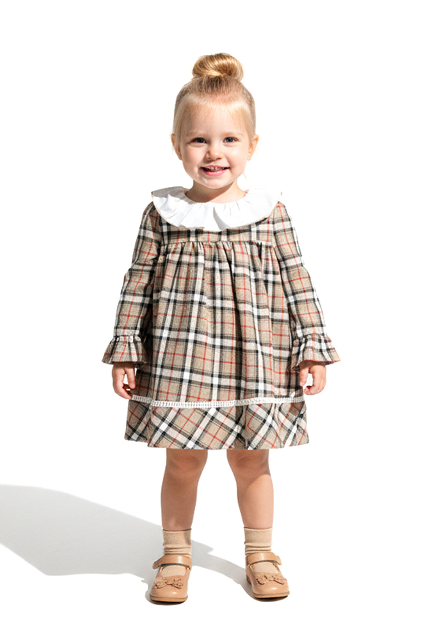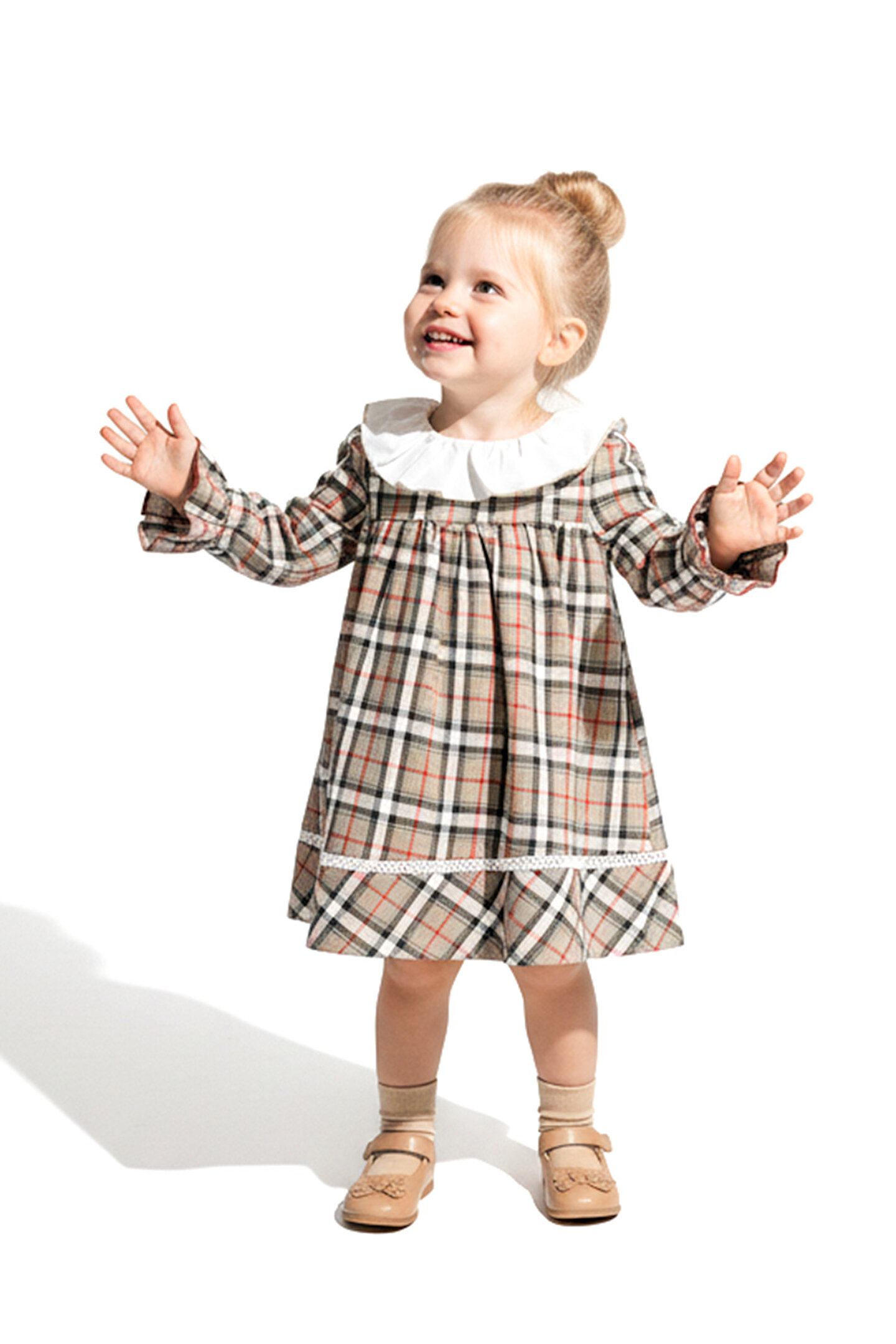 Baby Animals Kız Bebek Elbise Kız Çocuk Elbise Yakalı Doğum Günü Parti Düğün Özel Gün Uzun Kol Astarlı Ekose