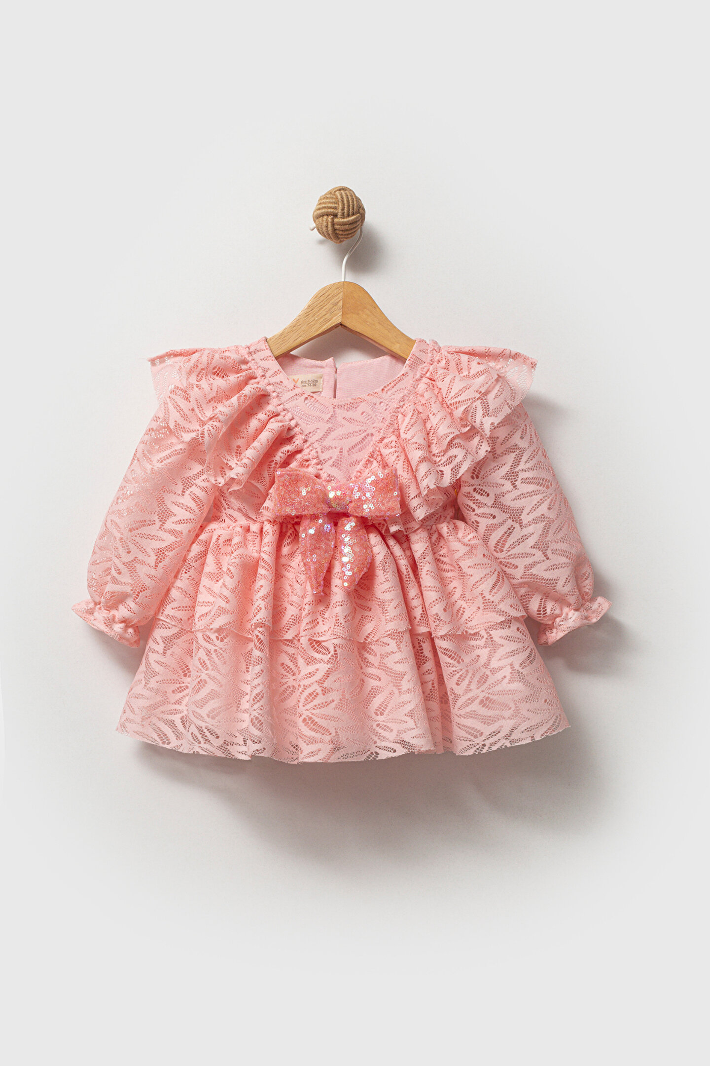 Mevsimlik Uzun Kollu Dantel Detaylı Kız Çocuk Elbisesi: Küçük prensesinizin özel günlerde zarafetini ve şıklığını ön plana çıkaracak bu elbise, önünde bulunan Yakalı fiyonk detayı ve dantel işlemeleriyle tasarlanmıştır.; Özellikler: Dantel Detaylar: Elbisenin ön kısmında ve kollarda bulunan dantel detaylar, zarafet ve incelik katarken, küçük prensesinizin görünümünü daha etkileyici hale getirir.; Önünde Yakalı Fiyonk Detayı: Elbisenin ön kısmında bulunan fiyonk detayı, sevimliliği ve şıklığı artırır.; Küçük prensesinizin görünümüne hoş bir dokunuş ekler.; Uzun Kollu Tasarım:Rahatlıkla giyilebilecek Uzun kollu tasarım, bebeğinizin serin kalmasını sağlar ve özgürce hareket etmesine olanak tanır.; Mevsimlik Kullanıma Uygun: Hafif yapısı ve nefes alabilen kumaşıyla rahatlıkla giyilebilir.; Özel Günler İçin Uygun: Özel günlerde tercih edilebilecek şık tasarımıyla bebeğinizin her anında göz kamaştırmasını sağlar.; Bu önü Yakalı fiyonklu ve dantel detaylı Uzun kollu kız çocuk elbisesi, küçük prensesinizin şık kalmasını sağlarken, aynı zamanda özel günlerde de zarafetini tamamlar.; Zarif detaylarıyla bezenmiş bu elbise, bebeğinizin tarzını ve güzelliğini ön plana çıkarır.