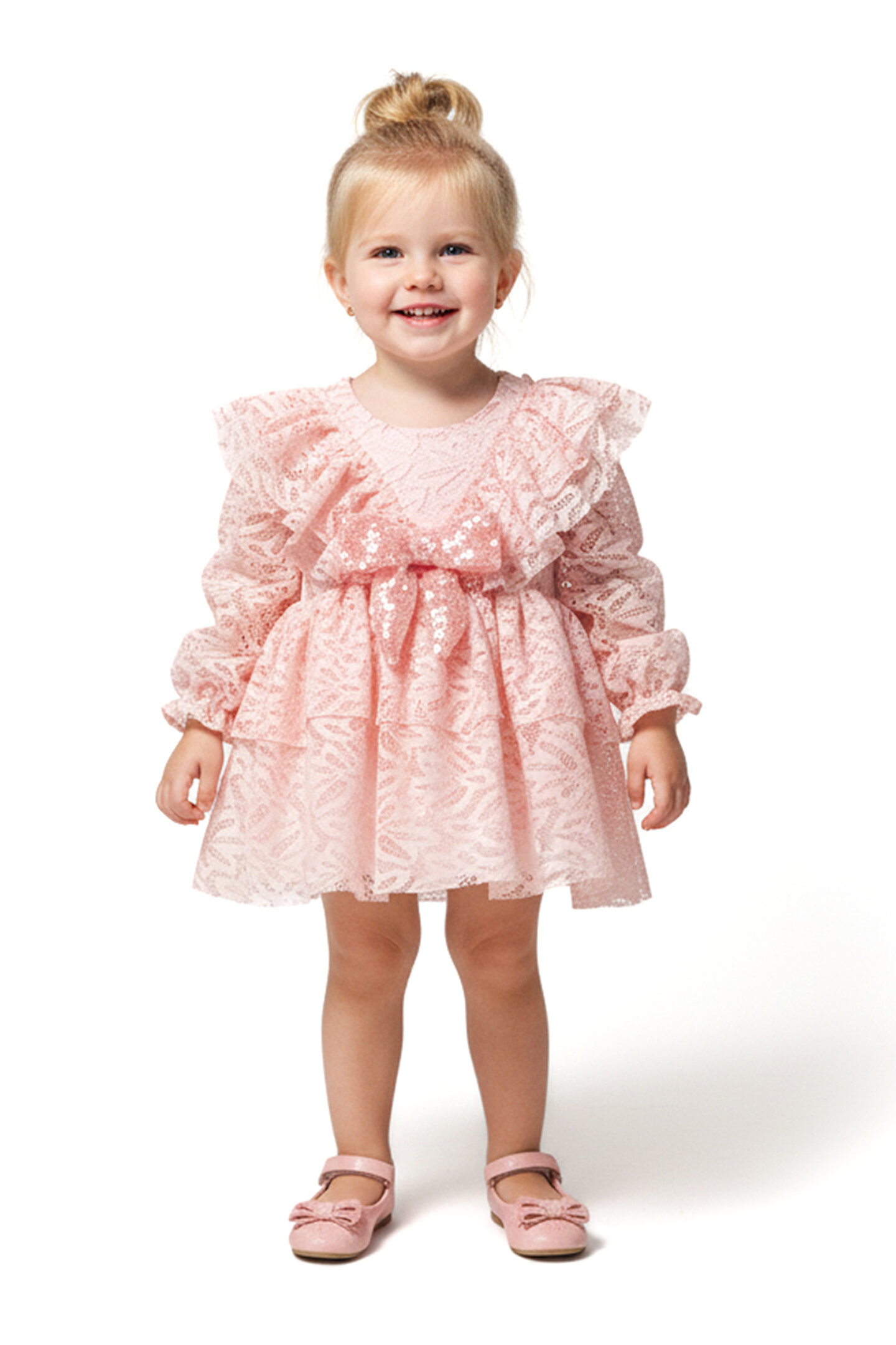 Baby Animals Kız Bebek Elbise Kız Çocuk Elbise Yakalı Doğum Günü Parti Düğün Özel Gün Uzun Kol Fiyonklu Astarlı