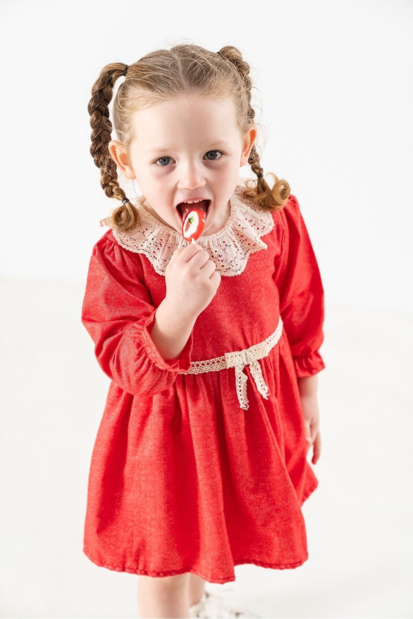 Retro Tarzında Dantel Detaylı Yaka ve Kemerle Süslenmiş Kız Çocuk Elbise Küçük prensesiniz için özel olarak tasarlanmış, göz alıcı dantel detaylarıyla bezeli, uzun kollu kız çocuk elbisesi, yaka ve kemeriyle öne çıkar. ; Bu şık elbise, retro tarzının özgünlüğünü yansıtarak çocuğunuzun tarzını ve konforunu bir araya getirir. ; Özellikler: Yaka ve Kemerde Dantel Detayı: Elbisenin yaka ve kemer kısmında yer alan dantel detayları, vintage tarzın zarafetini vurgular. ; Bu detaylar, elbiseye zariflik katarak özel günlerde veya günlük kullanımda fark yaratır. ; Uzun Kollu Tasarım: Serin havalarda dahi konfor sunan uzun kollu yapısı, çocuğunuzun rahat etmesini sağlar. ; Mevsim geçişlerinde stil ve konforu bir araya getirir. ; İç Astarlama: Elbisenin iç astarı, yumuşak dokusuyla çocuğunuzun cildini tahriş etmez ve gün boyu konfor sağlar. ; Kaliteli malzeme kullanımı, çocuğunuzun rahatça hareket etmesini sağlar. ; Retro Tarzı: Klasik ve zamansız tasarımıyla retro tarzının izlerini taşıyan bu elbise, özel günlerde veya günlük kullanımda unutulmaz bir görünüm sunar. ; Boyut Seçenekleri: 2-5 yaş aralığındaki kızlar için özel olarak tasarlanmış çeşitli beden seçenekleri mevcuttur, böylece en uygun bedeni seçerek çocuğunuzun konforunu sağlayabilirsiniz. ; Bu dantel detaylı yaka ve kemeriyle süslenmiş retro tarzı kız çocuk elbisesi, özel günlerde veya günlük kullanımda zarafeti ve rahatlığı bir arada sunar. ; Eğer çocuğunuzun tarzını ve konforunu ön planda tutmak istiyorsanız, bu elbise onun için mükemmel bir seçenek olabilir!;