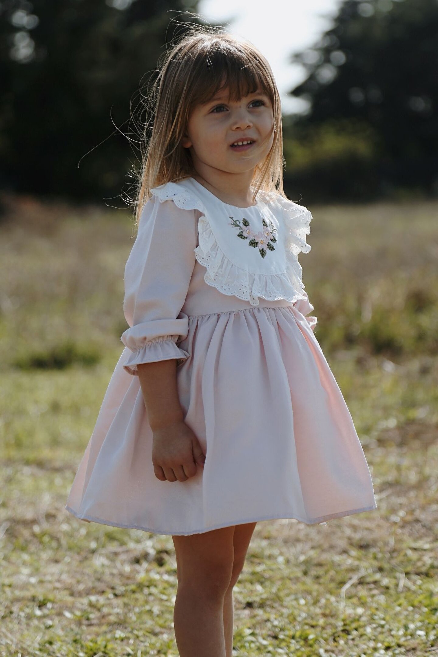 Çocuklar için özel olarak tasarlanmış, pamuklu kumaştan üretilmiş rahat ve konforlu bir elbise; Saten dokusuyla şıklığı ve zarafeti bir arada sunan, çocukların cildine nazik dokunuşuyla dikkat çeken bir tasarım; A; line silueti sayesinde vücut hatlarını nazikçe sararak feminen bir görünüm sağlar; Düz deseniyle sade ve şık bir görünüm sunarken, bisiklet yaka ve uzun kollarla tamamlanan zarif detaylar ekler; Düğün ve nikah gibi özel günlerde tercih edilebilecek ideal bir seçim olan bu elbise, regular boy ve orta kalınlıkta tasarlanmıştır; Astarlı yapısı sayesinde rahatlık ve konforu artırırken, fırfır detayları ile hareket kazandırır; Recycle+organik malzemelerle üretilmiş olup sürdürülebilir moda anlayışını destekler;