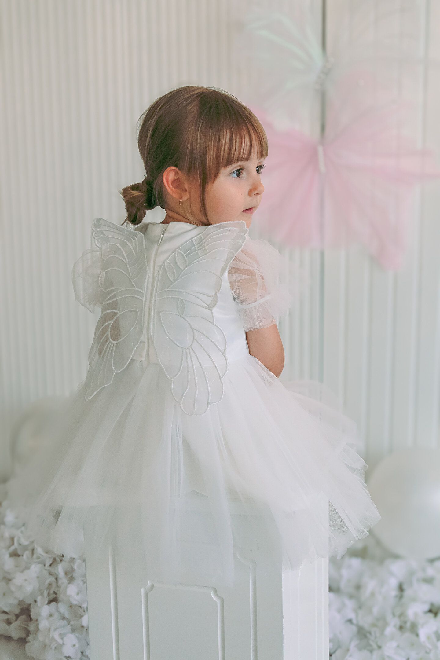 Baby Animals Kız Bebek Kız Çocuk Doğum Günü Parti Düğün Elbise Balonkol Kanatlı Tüllü Tütülü Tütü Astarlı