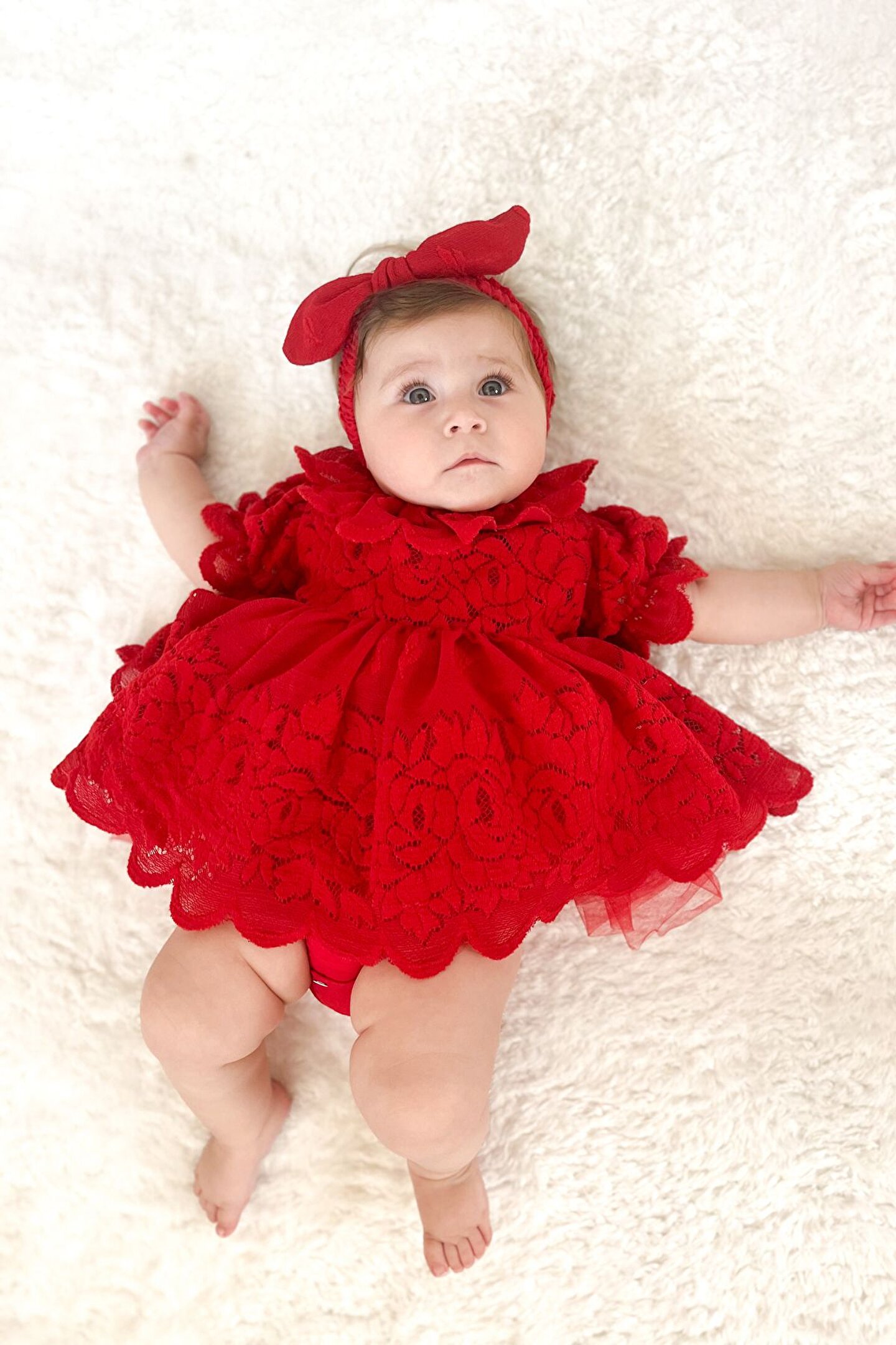 Kız Bebek Kız Çocuk Doğum Günü Parti Düğün Elbise Kısa Kol Bandanalı Dantelli Astarlı Romper