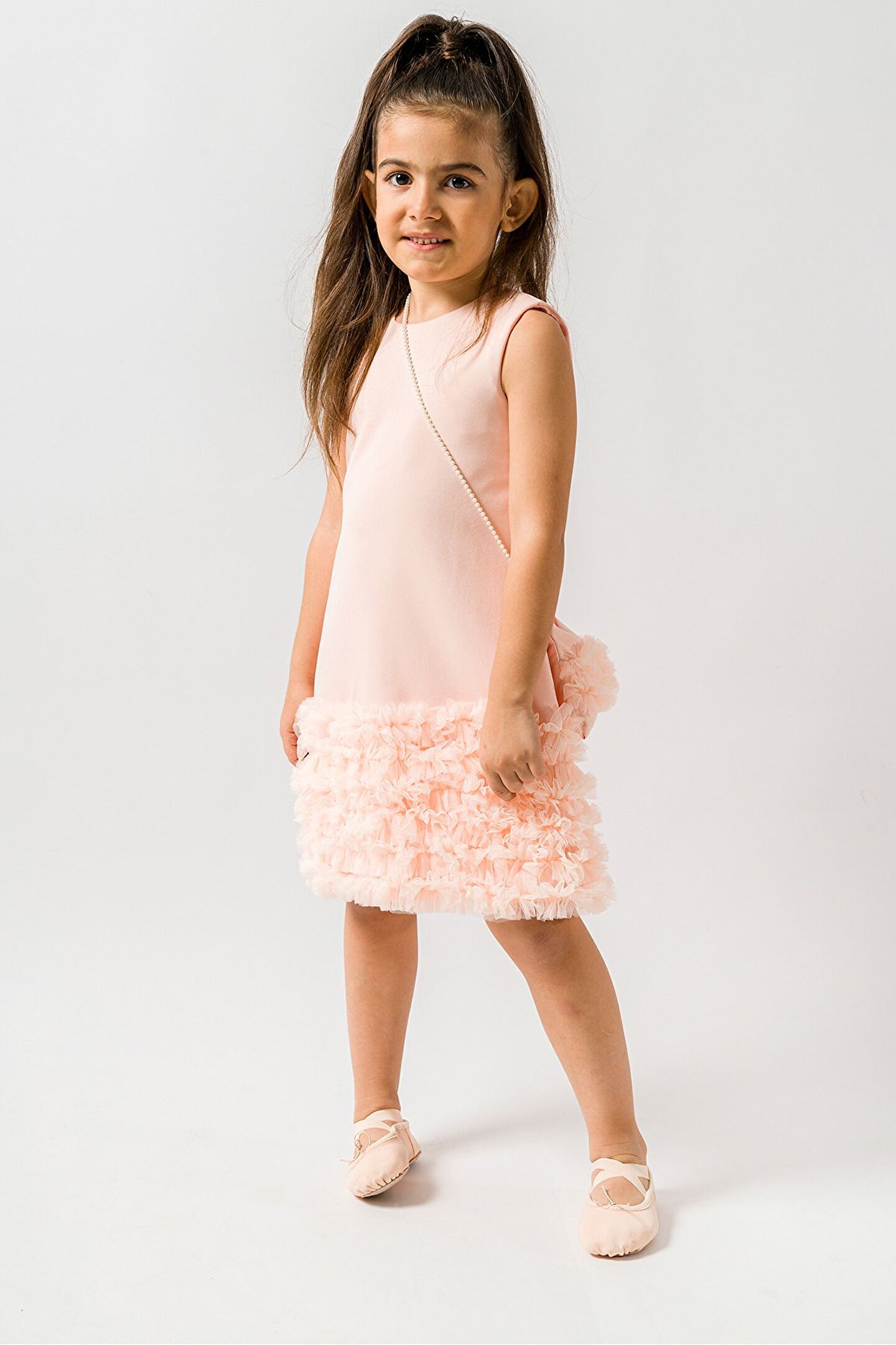 Yazlık Elbise Kısa Kollu Tüllü Tütü Astarlı Kız Çocuk Elbise Bebek Giyim Kız Bebek Elbise