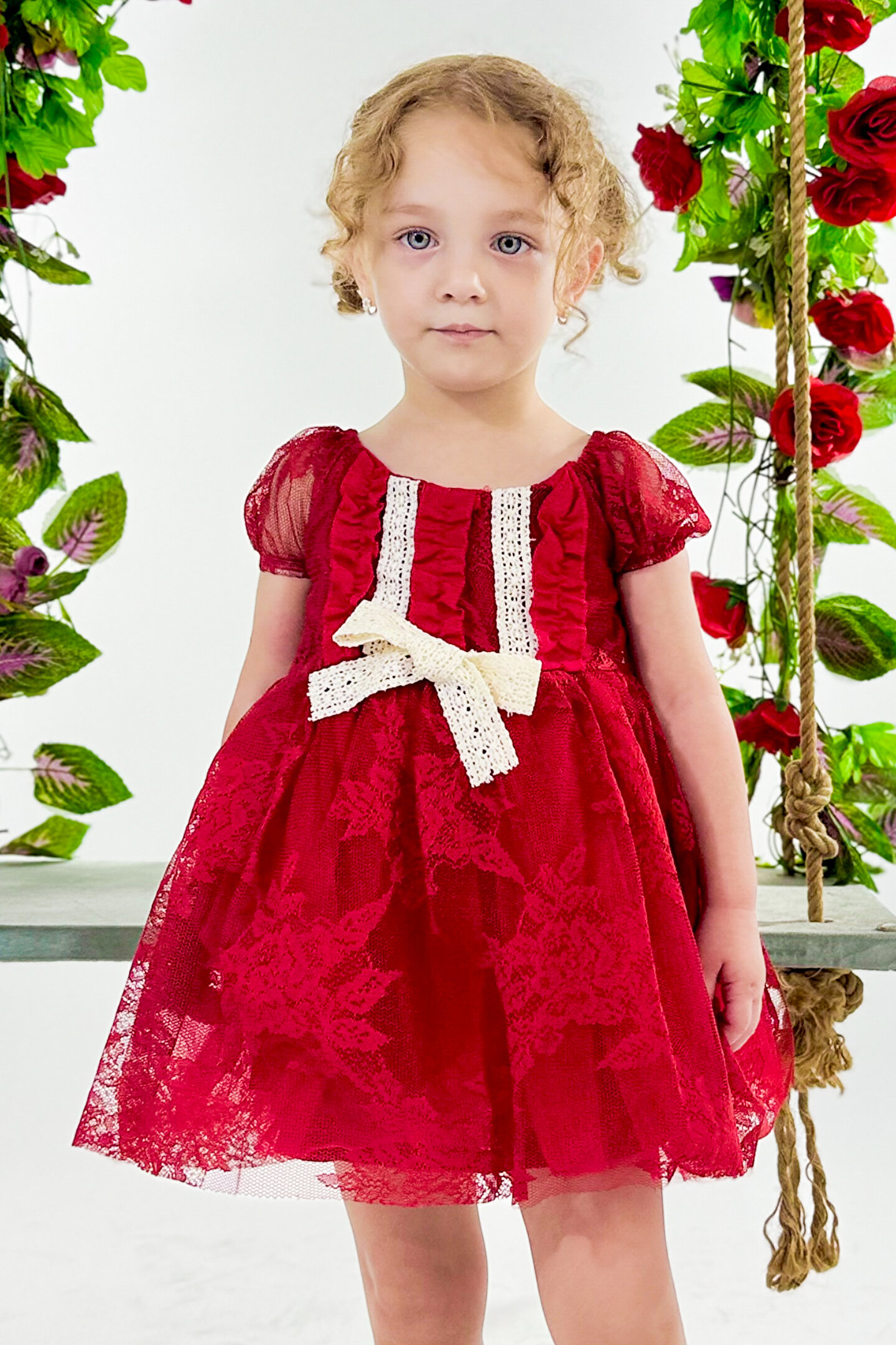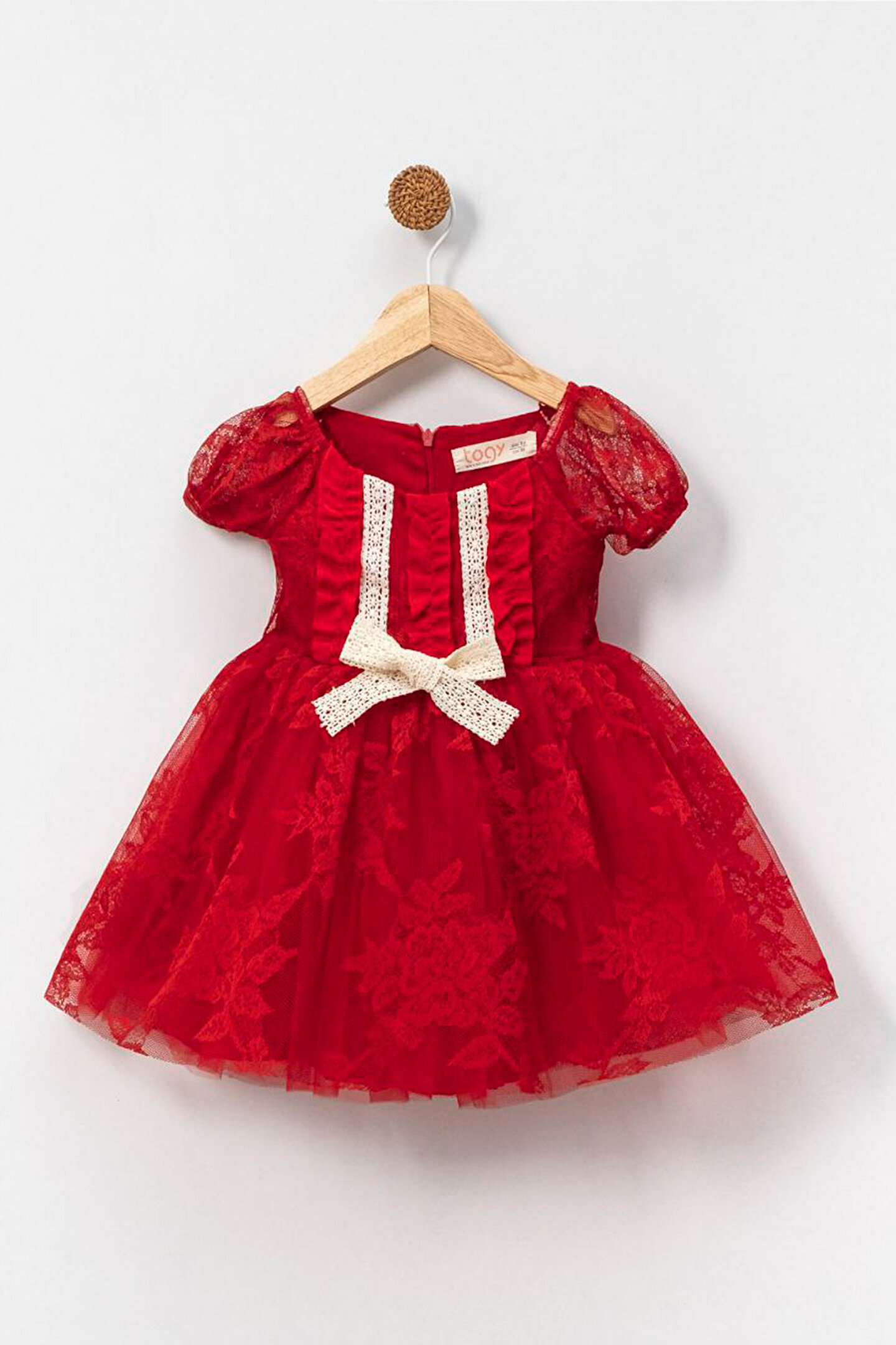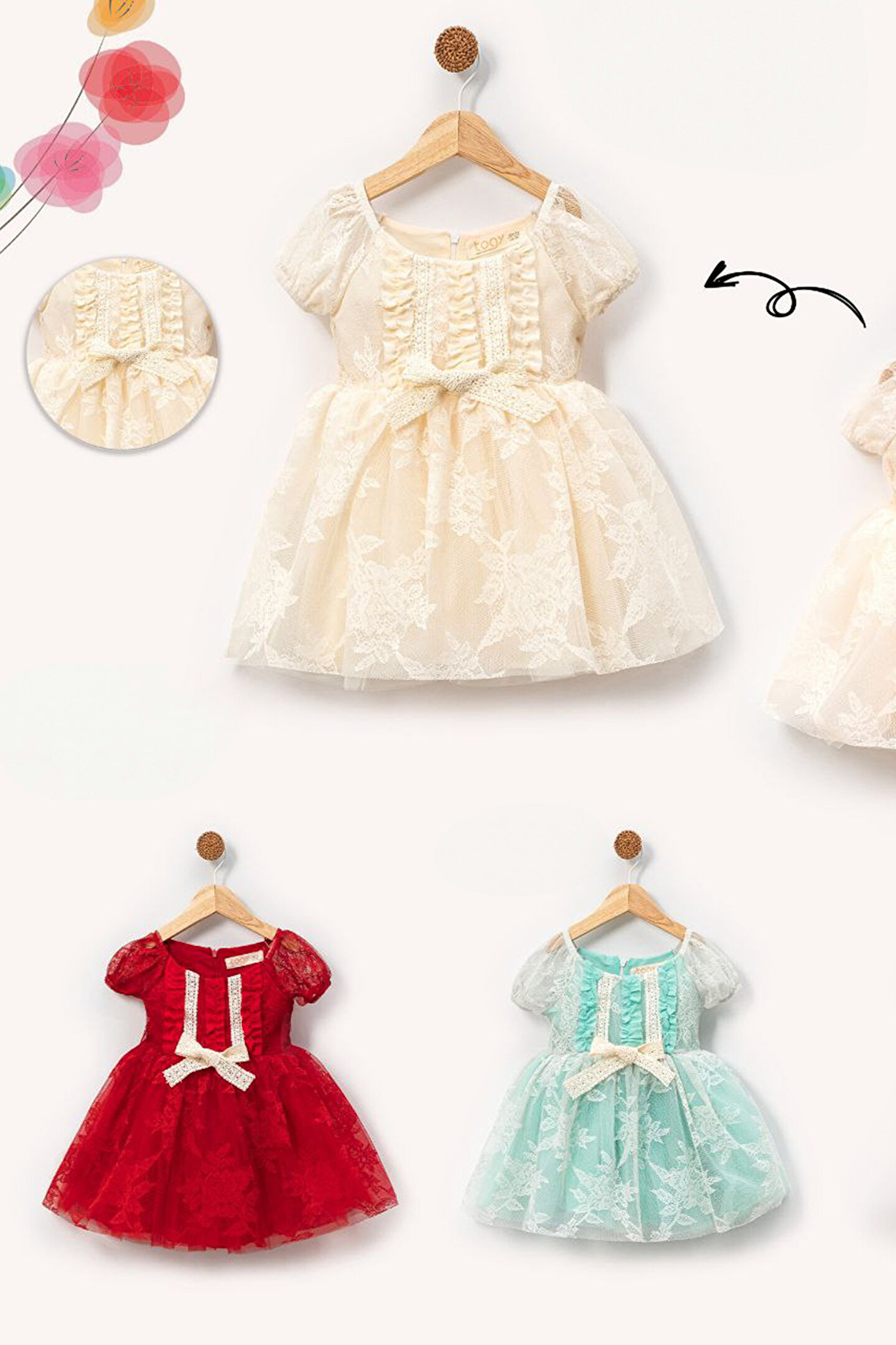 Yazlık Kısa Kollu Kolsuz Askılı Dantel Detaylı Astarlı Kız Çocuk Elbisesi: Küçük prensesinizin yaz mevsiminde özel günlerde zarafetini ve şıklığını ön plana çıkaracak bu elbise, önünde bulunan fiyonk detayı ve dantel işlemeleriyle tasarlanmıştır.; Ayrıca etek kısmında bulunan yırtmaç detayı, hareket özgürlüğü sağlarken bebeğinizin zarif bir görünüm sergilemesini sağlar.; Özellikler: Dantel Detaylar: Elbisenin ön kısmında ve kollarda bulunan dantel detaylar, zarafet ve incelik katarken, küçük prensesinizin görünümünü daha etkileyici hale getirir.; Önünde Fiyonk Detayı: Elbisenin ön kısmında bulunan fiyonk detayı, sevimliliği ve şıklığı artırır.; Küçük prensesinizin görünümüne hoş bir dokunuş ekler.; Yırtmaç Detayı: Etek kısmında bulunan yırtmaç detayı, hareket özgürlüğü sağlarken, elbisenin tasarımına dinamizm katar.; Kısa Kollu Tasarım: Sıcak yaz günlerinde rahatlıkla giyilebilecek kısa kollu tasarım, bebeğinizin serin kalmasını sağlar ve özgürce hareket etmesine olanak tanır.; Yazlık Kullanıma Uygun: Hafif yapısı ve nefes alabilen kumaşıyla yaz aylarında rahatlıkla giyilebilir.; Özel Günler İçin Uygun: Özel günlerde tercih edilebilecek şık tasarımıyla bebeğinizin her anında göz kamaştırmasını sağlar.; Bu yırtmaçlı, önü fiyonklu ve dantel detaylı kısa kollu Kolsuz Askılı kız çocuk elbisesi, küçük prensesinizin yazın serin ve şık kalmasını sağlarken, aynı zamanda özel günlerde de zarafetini tamamlar.; Zarif detaylarıyla bezenmiş bu elbise, bebeğinizin tarzını ve güzelliğini ön plana çıkarır.