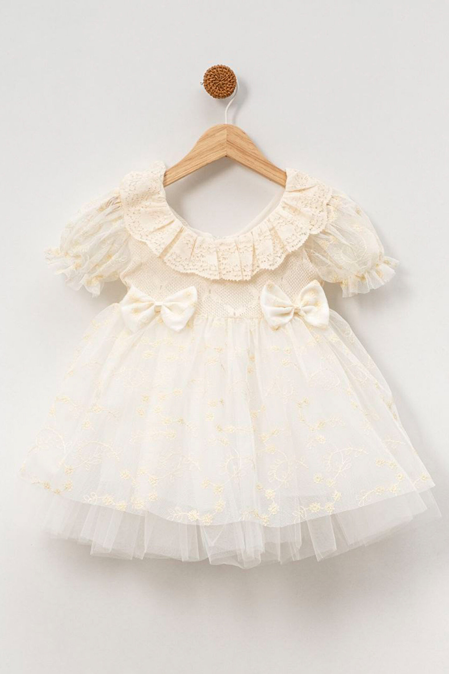Baby Animals Kız Bebek Kız Çocuk Doğum Günü Parti Düğün Elbise Kısa Kol Fiyonk Dantelli Astarlı
