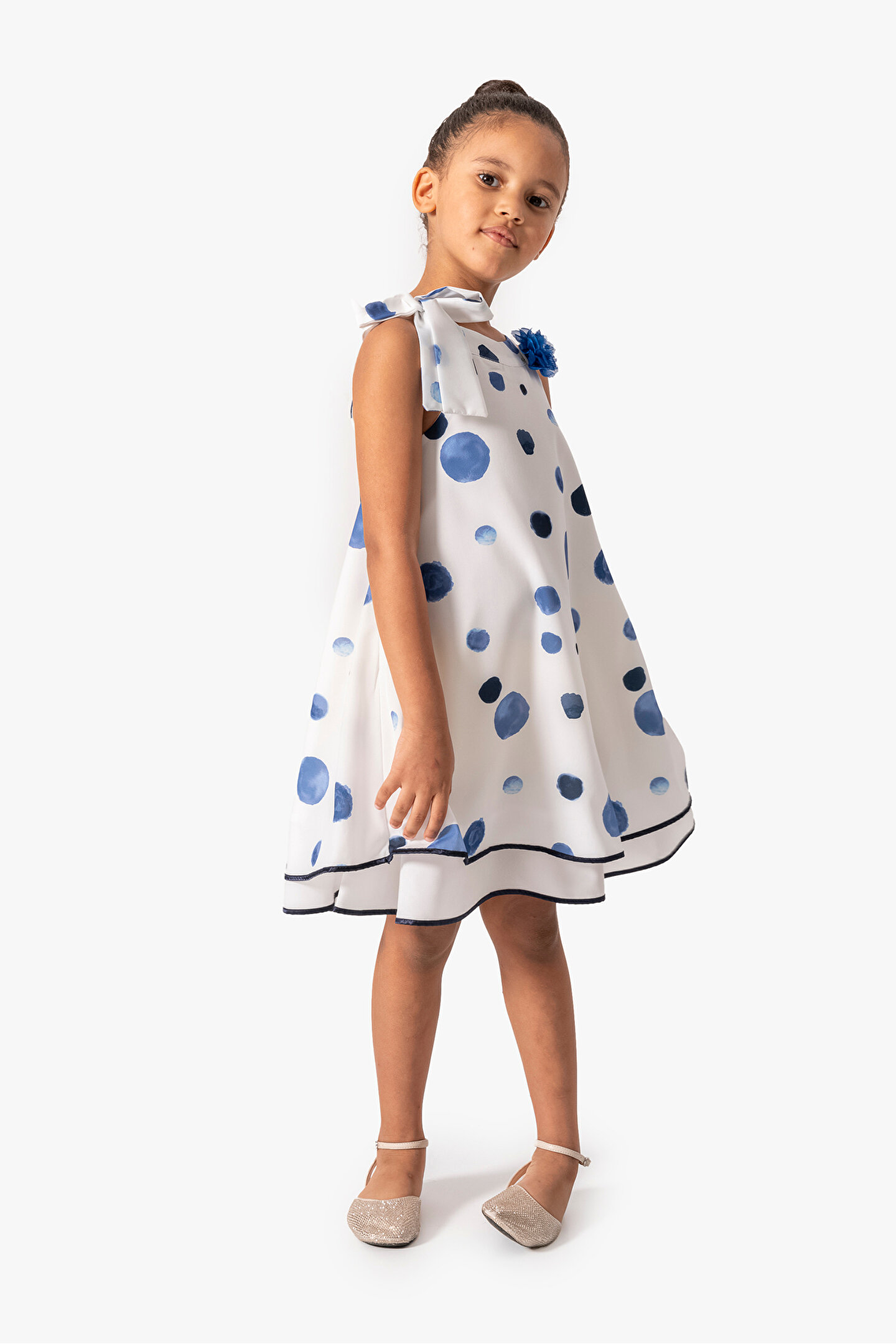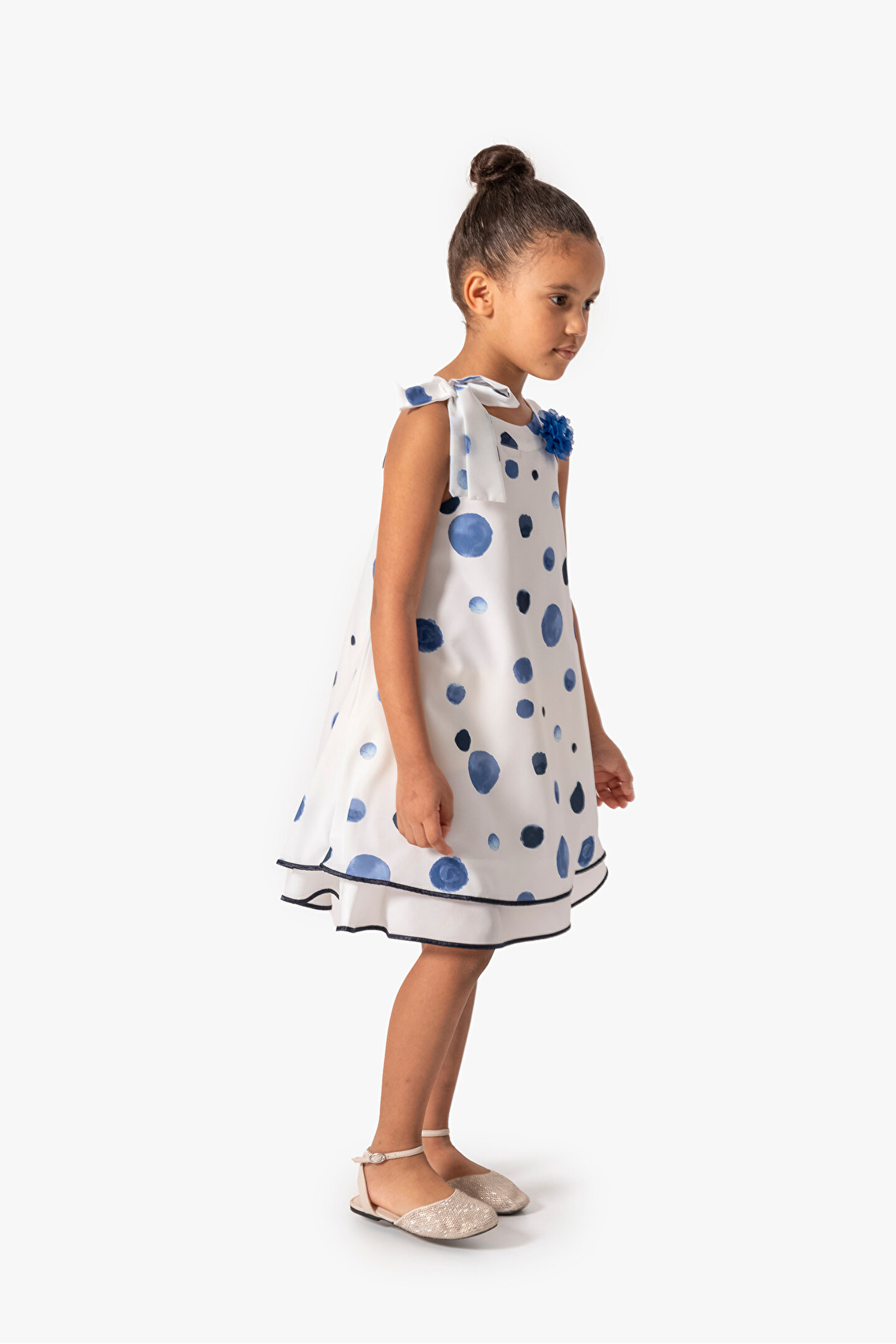 Yazlık Kısa Kollu Kolsuz Askılı Dantel Detaylı Astarlı Kız Çocuk Elbisesi: Küçük prensesinizin yaz mevsiminde özel günlerde zarafetini ve şıklığını ön plana çıkaracak bu elbise, önünde bulunan fiyonk detayı ve dantel işlemeleriyle tasarlanmıştır.; Ayrıca etek kısmında bulunan yırtmaç detayı, hareket özgürlüğü sağlarken bebeğinizin zarif bir görünüm sergilemesini sağlar.; Özellikler: Dantel Detaylar: Elbisenin ön kısmında ve kollarda bulunan dantel detaylar, zarafet ve incelik katarken, küçük prensesinizin görünümünü daha etkileyici hale getirir.; Önünde Fiyonk Detayı: Elbisenin ön kısmında bulunan fiyonk detayı, sevimliliği ve şıklığı artırır.; Küçük prensesinizin görünümüne hoş bir dokunuş ekler.; Yırtmaç Detayı: Etek kısmında bulunan yırtmaç detayı, hareket özgürlüğü sağlarken, elbisenin tasarımına dinamizm katar.; Kısa Kollu Tasarım: Sıcak yaz günlerinde rahatlıkla giyilebilecek kısa kollu tasarım, bebeğinizin serin kalmasını sağlar ve özgürce hareket etmesine olanak tanır.; Yazlık Kullanıma Uygun: Hafif yapısı ve nefes alabilen kumaşıyla yaz aylarında rahatlıkla giyilebilir.; Özel Günler İçin Uygun: Özel günlerde tercih edilebilecek şık tasarımıyla bebeğinizin her anında göz kamaştırmasını sağlar.; Bu yırtmaçlı, önü fiyonklu ve dantel detaylı kısa kollu Kolsuz Askılı kız çocuk elbisesi, küçük prensesinizin yazın serin ve şık kalmasını sağlarken, aynı zamanda özel günlerde de zarafetini tamamlar.; Zarif detaylarıyla bezenmiş bu elbise, bebeğinizin tarzını ve güzelliğini ön plana çıkarır.