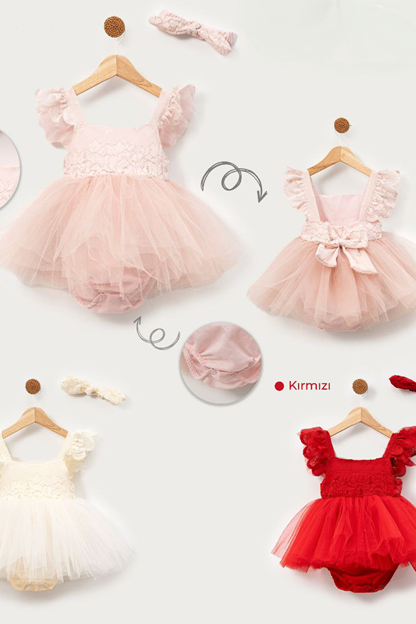 Yazlık Kısa Kollu Kolsuz Askılı Dantel Detaylı Astarlı Kız Çocuk Elbisesi: Küçük prensesinizin yaz mevsiminde özel günlerde zarafetini ve şıklığını ön plana çıkaracak bu elbise, önünde bulunan fiyonk detayı ve dantel işlemeleriyle tasarlanmıştır.; Ayrıca etek kısmında bulunan yırtmaç detayı, hareket özgürlüğü sağlarken bebeğinizin zarif bir görünüm sergilemesini sağlar.; Özellikler: Dantel Detaylar: Elbisenin ön kısmında ve kollarda bulunan dantel detaylar, zarafet ve incelik katarken, küçük prensesinizin görünümünü daha etkileyici hale getirir.; Önünde Fiyonk Detayı: Elbisenin ön kısmında bulunan fiyonk detayı, sevimliliği ve şıklığı artırır.; Küçük prensesinizin görünümüne hoş bir dokunuş ekler.; Yırtmaç Detayı: Etek kısmında bulunan yırtmaç detayı, hareket özgürlüğü sağlarken, elbisenin tasarımına dinamizm katar.; Kısa Kollu Tasarım: Sıcak yaz günlerinde rahatlıkla giyilebilecek kısa kollu tasarım, bebeğinizin serin kalmasını sağlar ve özgürce hareket etmesine olanak tanır.; Yazlık Kullanıma Uygun: Hafif yapısı ve nefes alabilen kumaşıyla yaz aylarında rahatlıkla giyilebilir.; Özel Günler İçin Uygun: Özel günlerde tercih edilebilecek şık tasarımıyla bebeğinizin her anında göz kamaştırmasını sağlar.; Bu yırtmaçlı, önü fiyonklu ve dantel detaylı kısa kollu Kolsuz Askılı kız çocuk elbisesi, küçük prensesinizin yazın serin ve şık kalmasını sağlarken, aynı zamanda özel günlerde de zarafetini tamamlar.; Zarif detaylarıyla bezenmiş bu elbise, bebeğinizin tarzını ve güzelliğini ön plana çıkarır.