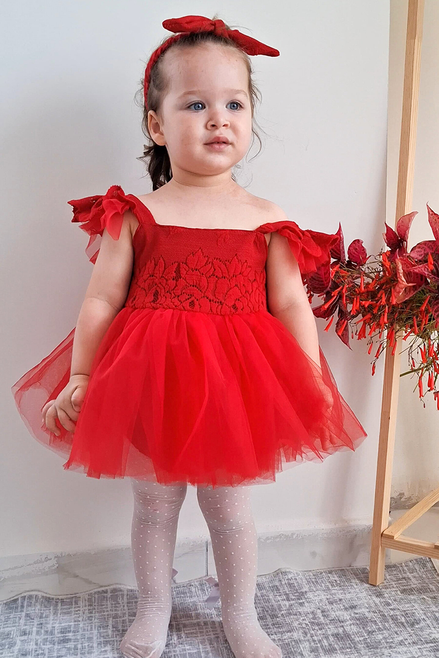 Yazlık Kısa Kollu Kolsuz Askılı Dantel Detaylı Astarlı Kız Çocuk Elbisesi: Küçük prensesinizin yaz mevsiminde özel günlerde zarafetini ve şıklığını ön plana çıkaracak bu elbise, önünde bulunan fiyonk detayı ve dantel işlemeleriyle tasarlanmıştır.; Ayrıca etek kısmında bulunan yırtmaç detayı, hareket özgürlüğü sağlarken bebeğinizin zarif bir görünüm sergilemesini sağlar.; Özellikler: Dantel Detaylar: Elbisenin ön kısmında ve kollarda bulunan dantel detaylar, zarafet ve incelik katarken, küçük prensesinizin görünümünü daha etkileyici hale getirir.; Önünde Fiyonk Detayı: Elbisenin ön kısmında bulunan fiyonk detayı, sevimliliği ve şıklığı artırır.; Küçük prensesinizin görünümüne hoş bir dokunuş ekler.; Yırtmaç Detayı: Etek kısmında bulunan yırtmaç detayı, hareket özgürlüğü sağlarken, elbisenin tasarımına dinamizm katar.; Kısa Kollu Tasarım: Sıcak yaz günlerinde rahatlıkla giyilebilecek kısa kollu tasarım, bebeğinizin serin kalmasını sağlar ve özgürce hareket etmesine olanak tanır.; Yazlık Kullanıma Uygun: Hafif yapısı ve nefes alabilen kumaşıyla yaz aylarında rahatlıkla giyilebilir.; Özel Günler İçin Uygun: Özel günlerde tercih edilebilecek şık tasarımıyla bebeğinizin her anında göz kamaştırmasını sağlar.; Bu yırtmaçlı, önü fiyonklu ve dantel detaylı kısa kollu Kolsuz Askılı kız çocuk elbisesi, küçük prensesinizin yazın serin ve şık kalmasını sağlarken, aynı zamanda özel günlerde de zarafetini tamamlar.; Zarif detaylarıyla bezenmiş bu elbise, bebeğinizin tarzını ve güzelliğini ön plana çıkarır.
