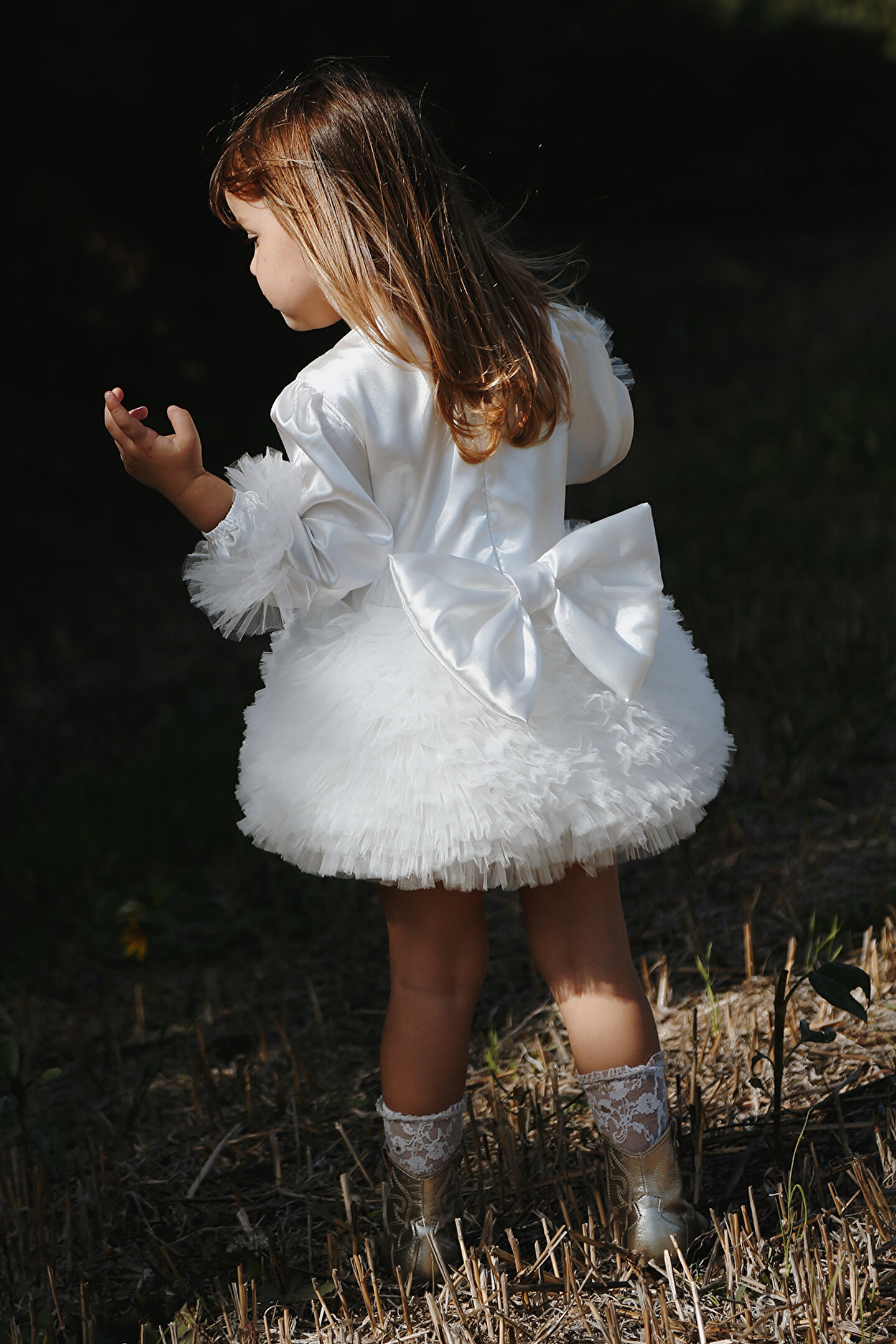 Üst simli , alt tütüsü kabarık tütülü, uzun kol ve kol ucunda tütü lastik dönmektedir; Arkasında büyük dolgulu fiyonk bulunmakta; Fermuarlıdır; Altında tül kullanılmıştır kabarık dursun diye; Tülleri bebeğinizi rahatsız etmemesi için içinde pamuk astar vardır; Ürünün daha uzun süreli kullanılması için aşağıdaki yıkama talimatlarına uyulması önerilir; Eğer mümkünse ilk yıkamanızı elde yapılması, sonraki yıkamalar için 30 derecede düşük devir, yumuşatıcı kullanılmadan ve sıkma yapmadan yıkama yapılması tavsiye edilir;