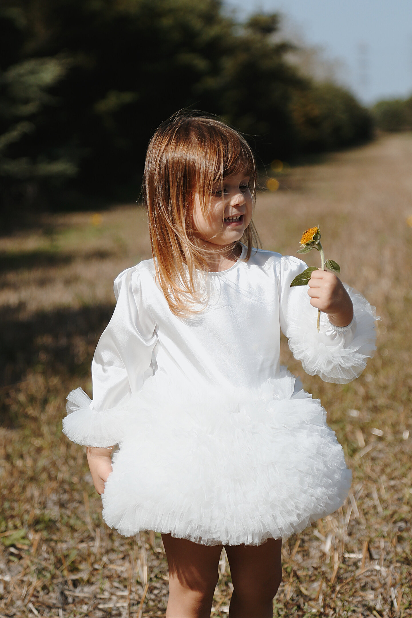 Üst simli , alt tütüsü kabarık tütülü, uzun kol ve kol ucunda tütü lastik dönmektedir; Arkasında büyük dolgulu fiyonk bulunmakta; Fermuarlıdır; Altında tül kullanılmıştır kabarık dursun diye; Tülleri bebeğinizi rahatsız etmemesi için içinde pamuk astar vardır; Ürünün daha uzun süreli kullanılması için aşağıdaki yıkama talimatlarına uyulması önerilir; Eğer mümkünse ilk yıkamanızı elde yapılması, sonraki yıkamalar için 30 derecede düşük devir, yumuşatıcı kullanılmadan ve sıkma yapmadan yıkama yapılması tavsiye edilir;