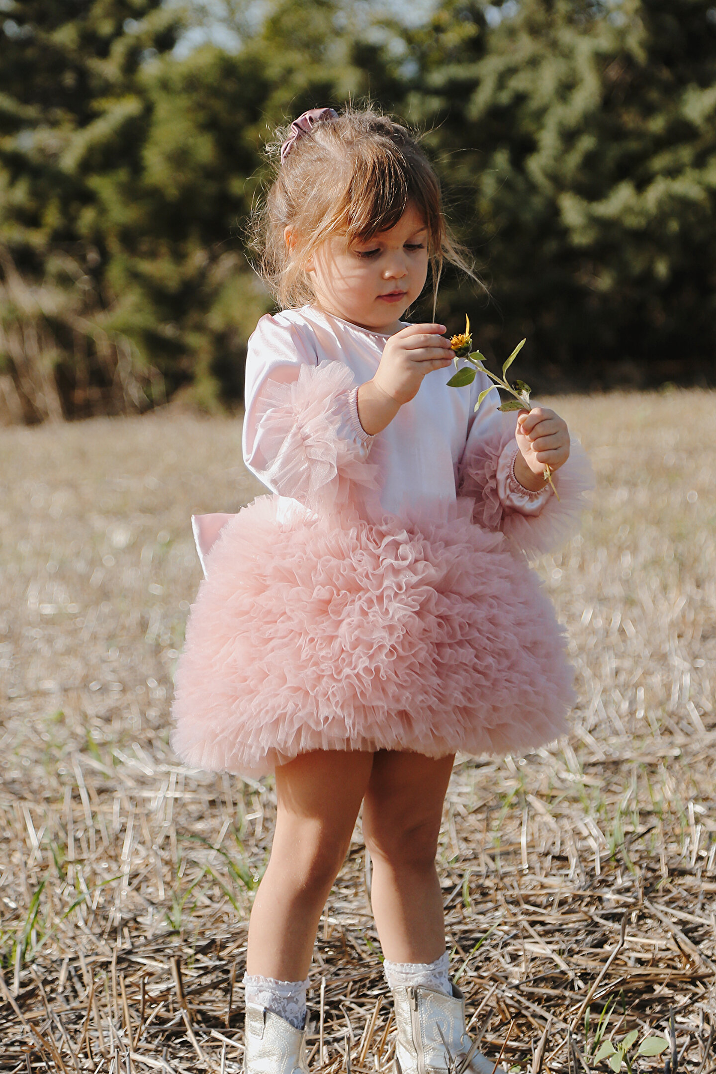 Üst simli , alt tütüsü kabarık tütülü, uzun kol ve kol ucunda tütü lastik dönmektedir; Arkasında büyük dolgulu fiyonk bulunmakta; Fermuarlıdır; Altında tül kullanılmıştır kabarık dursun diye; Tülleri bebeğinizi rahatsız etmemesi için içinde pamuk astar vardır; Ürünün daha uzun süreli kullanılması için aşağıdaki yıkama talimatlarına uyulması önerilir; Eğer mümkünse ilk yıkamanızı elde yapılması, sonraki yıkamalar için 30 derecede düşük devir, yumuşatıcı kullanılmadan ve sıkma yapmadan yıkama yapılması tavsiye edilir;