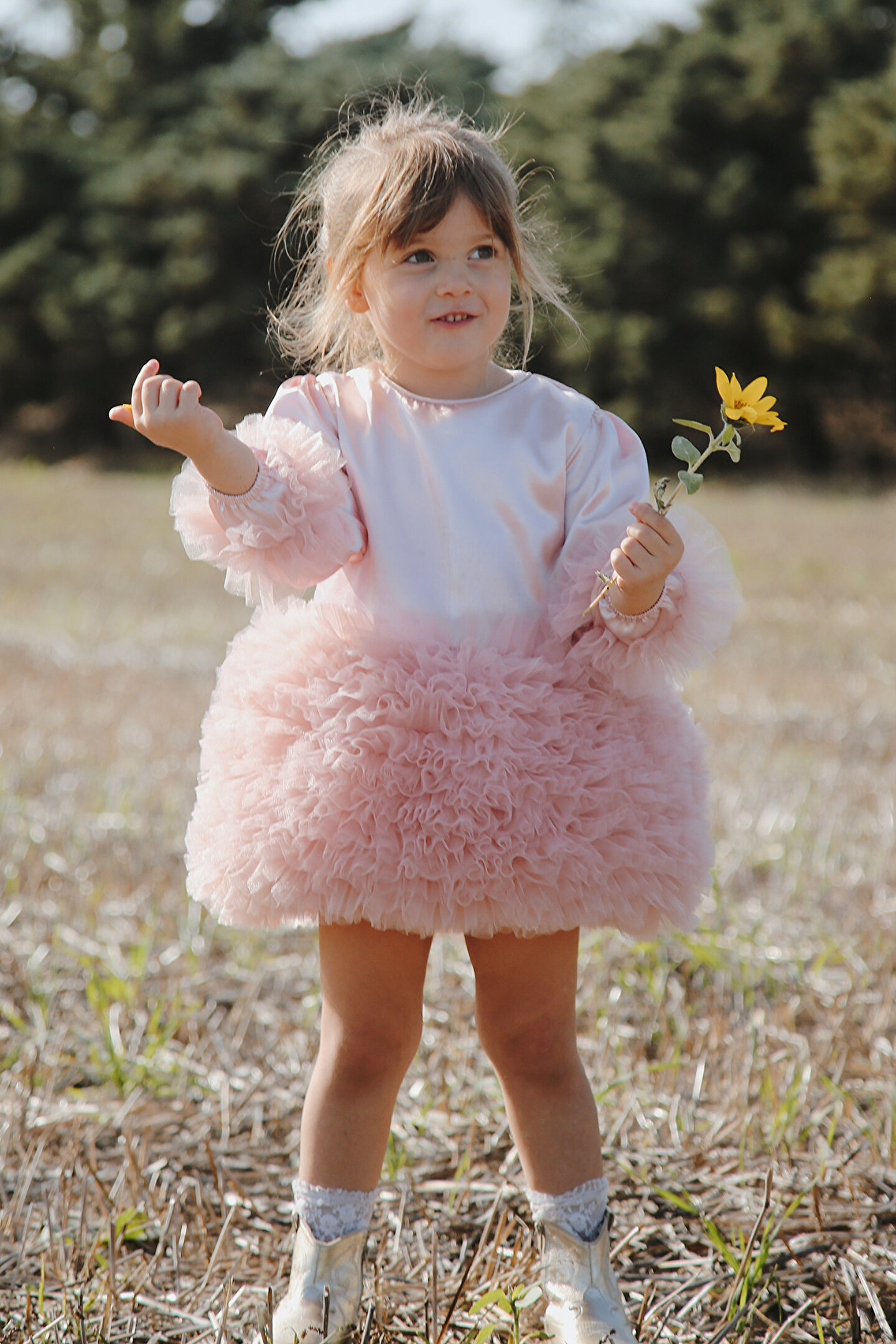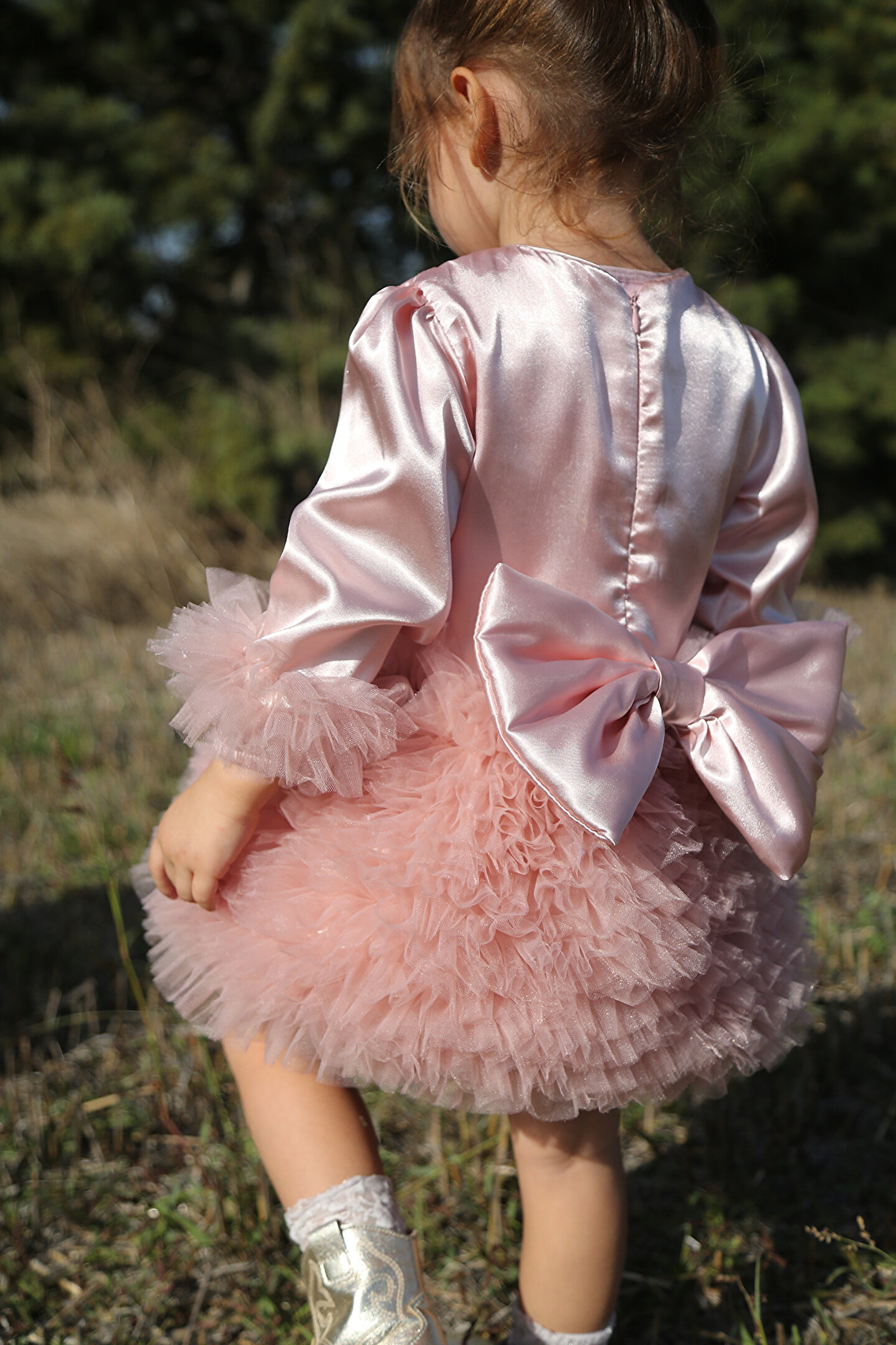 Üst simli , alt tütüsü kabarık tütülü, uzun kol ve kol ucunda tütü lastik dönmektedir; Arkasında büyük dolgulu fiyonk bulunmakta; Fermuarlıdır; Altında tül kullanılmıştır kabarık dursun diye; Tülleri bebeğinizi rahatsız etmemesi için içinde pamuk astar vardır; Ürünün daha uzun süreli kullanılması için aşağıdaki yıkama talimatlarına uyulması önerilir; Eğer mümkünse ilk yıkamanızı elde yapılması, sonraki yıkamalar için 30 derecede düşük devir, yumuşatıcı kullanılmadan ve sıkma yapmadan yıkama yapılması tavsiye edilir;