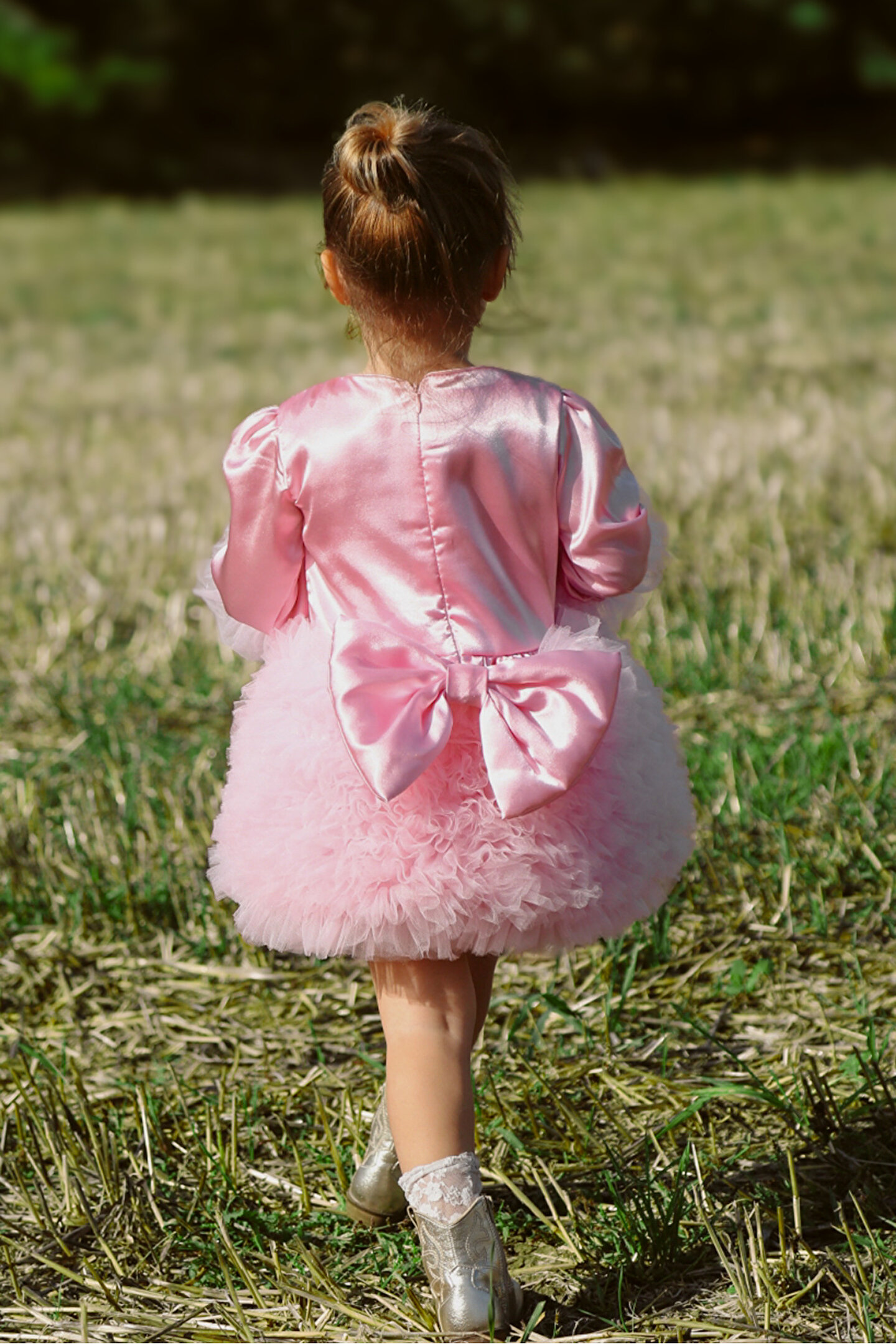 Üst simli , alt tütüsü kabarık tütülü, uzun kol ve kol ucunda tütü lastik dönmektedir.; Arkasında büyük dolgulu fiyonk bulunmakta.; Fermuarlıdır.; Altında tül kullanılmıştır kabarık dursun diye.; Tülleri bebeğinizi rahatsız etmemesi için içinde pamuk astar vardır.; Ürünün daha uzun süreli kullanılması için aşağıdaki yıkama talimatlarına uyulması önerilir.; Eğer mümkünse ilk yıkamanızı elde yapılması, sonraki yıkamalar için 30 derecede düşük devir, yumuşatıcı kullanılmadan ve sıkma yapmadan yıkama yapılması tavsiye edilir.