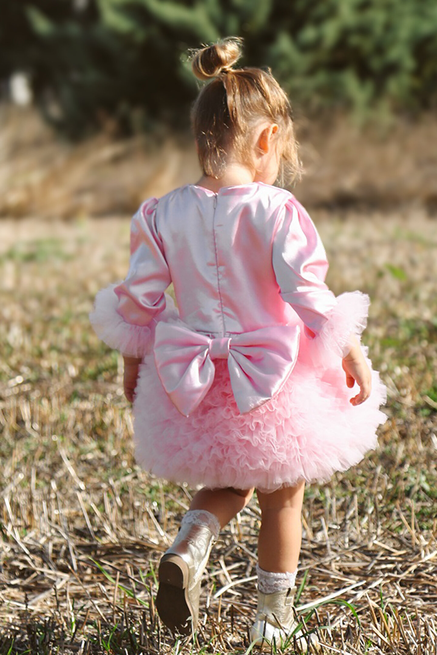 Üst simli , alt tütüsü kabarık tütülü, uzun kol ve kol ucunda tütü lastik dönmektedir.; Arkasında büyük dolgulu fiyonk bulunmakta.; Fermuarlıdır.; Altında tül kullanılmıştır kabarık dursun diye.; Tülleri bebeğinizi rahatsız etmemesi için içinde pamuk astar vardır.; Ürünün daha uzun süreli kullanılması için aşağıdaki yıkama talimatlarına uyulması önerilir.; Eğer mümkünse ilk yıkamanızı elde yapılması, sonraki yıkamalar için 30 derecede düşük devir, yumuşatıcı kullanılmadan ve sıkma yapmadan yıkama yapılması tavsiye edilir.